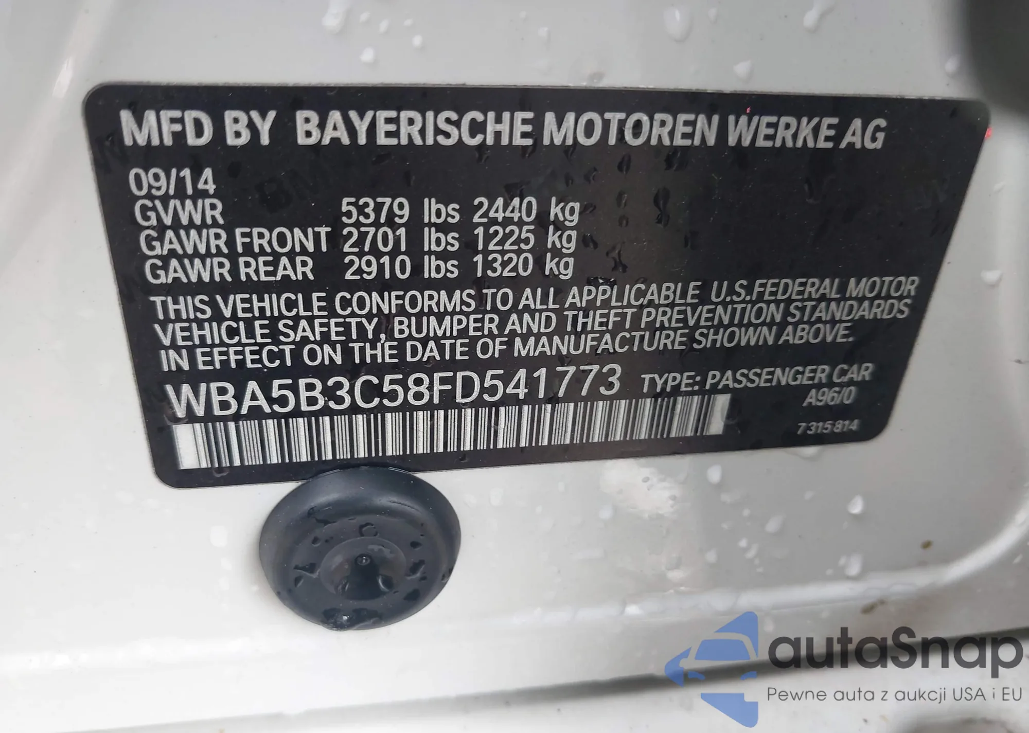 • VIN WBA5B3C58FD541773