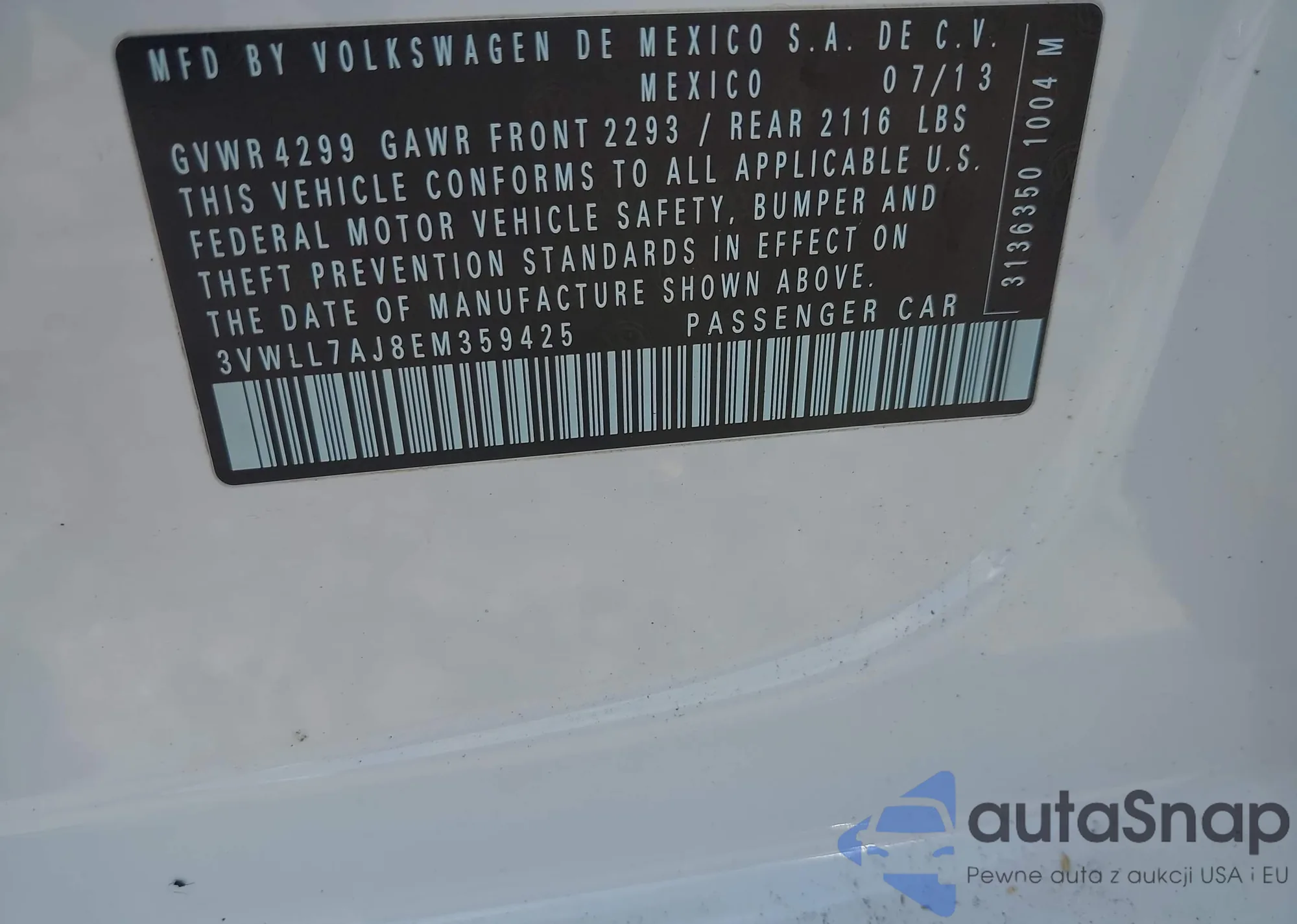 • VIN 3VWLL7AJ8EM359425