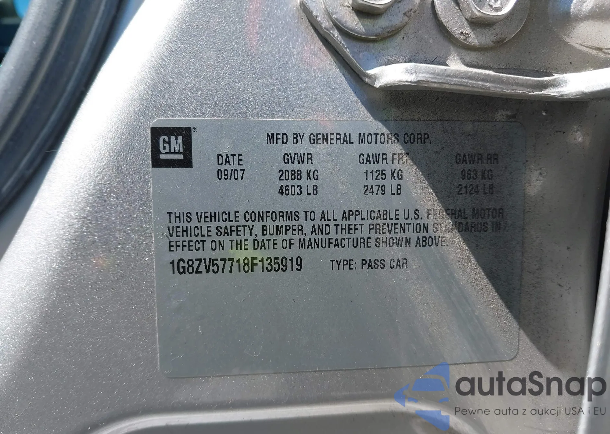 • VIN 1G8ZV57718F135919
