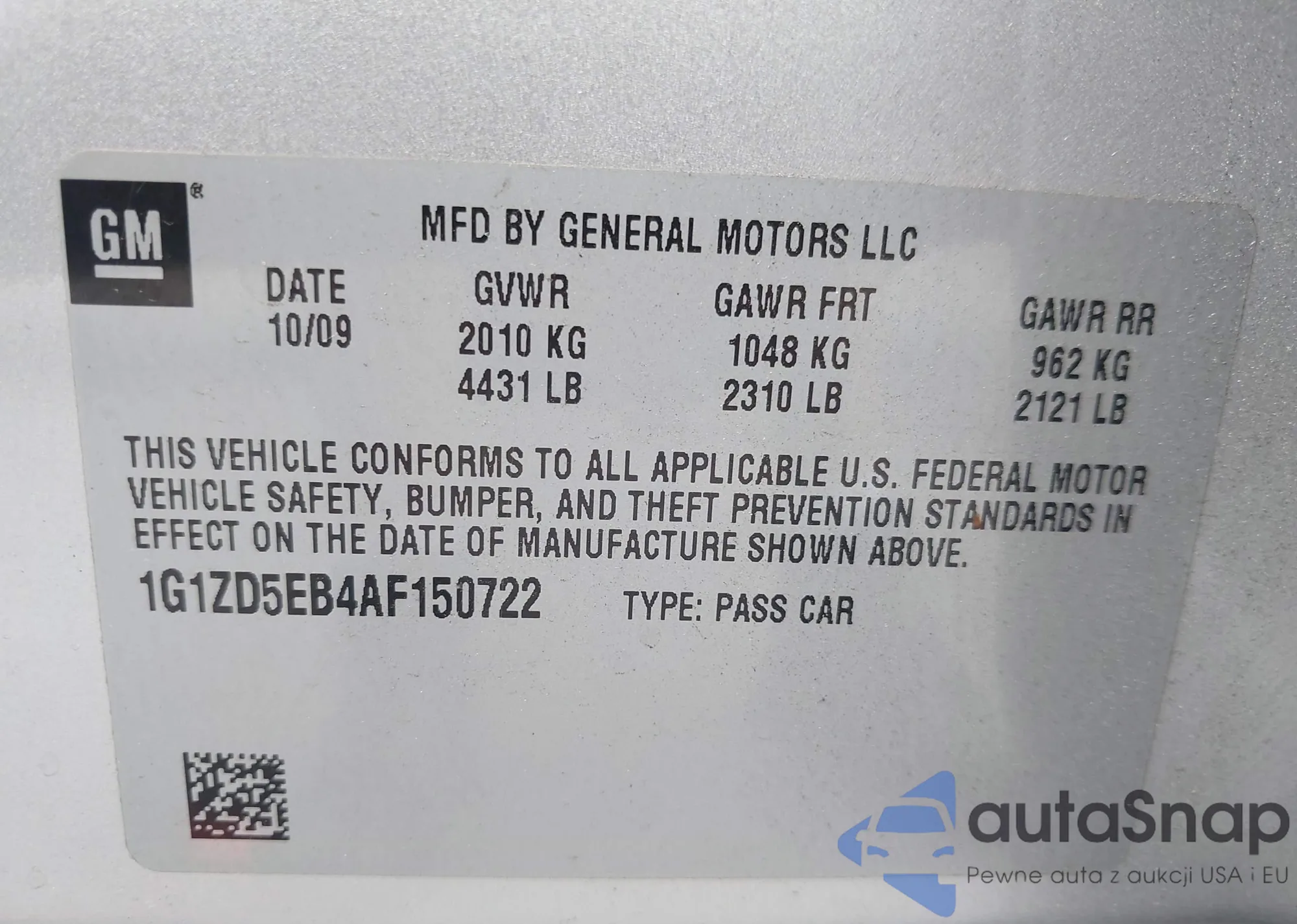 • VIN 1G1ZD5EB4AF150722