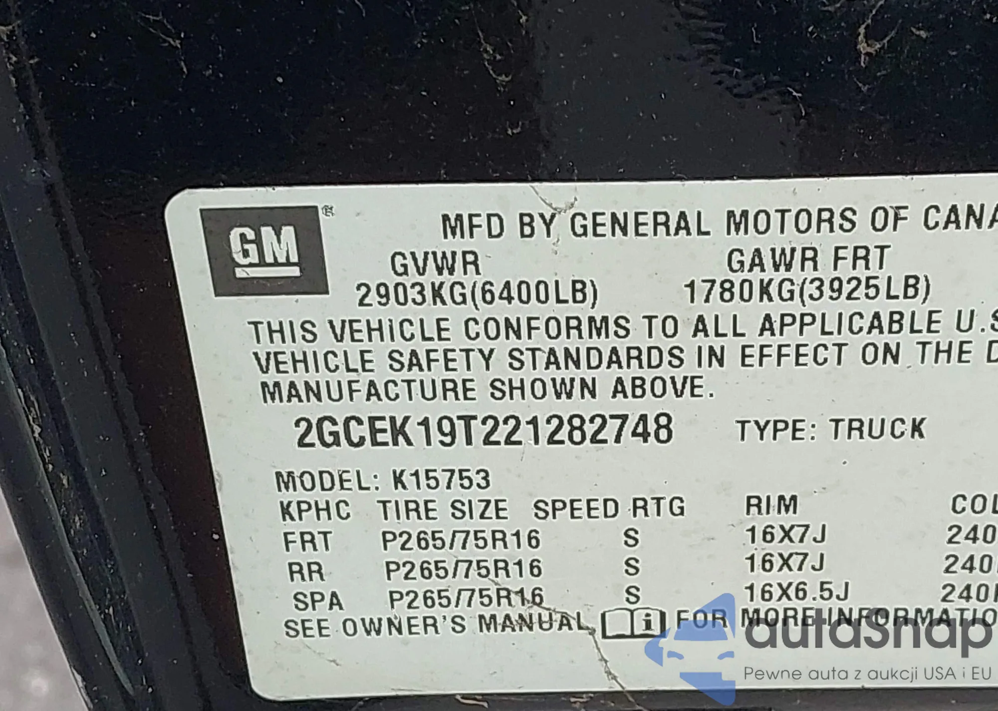 • VIN 2GNAXUEV7M6130647