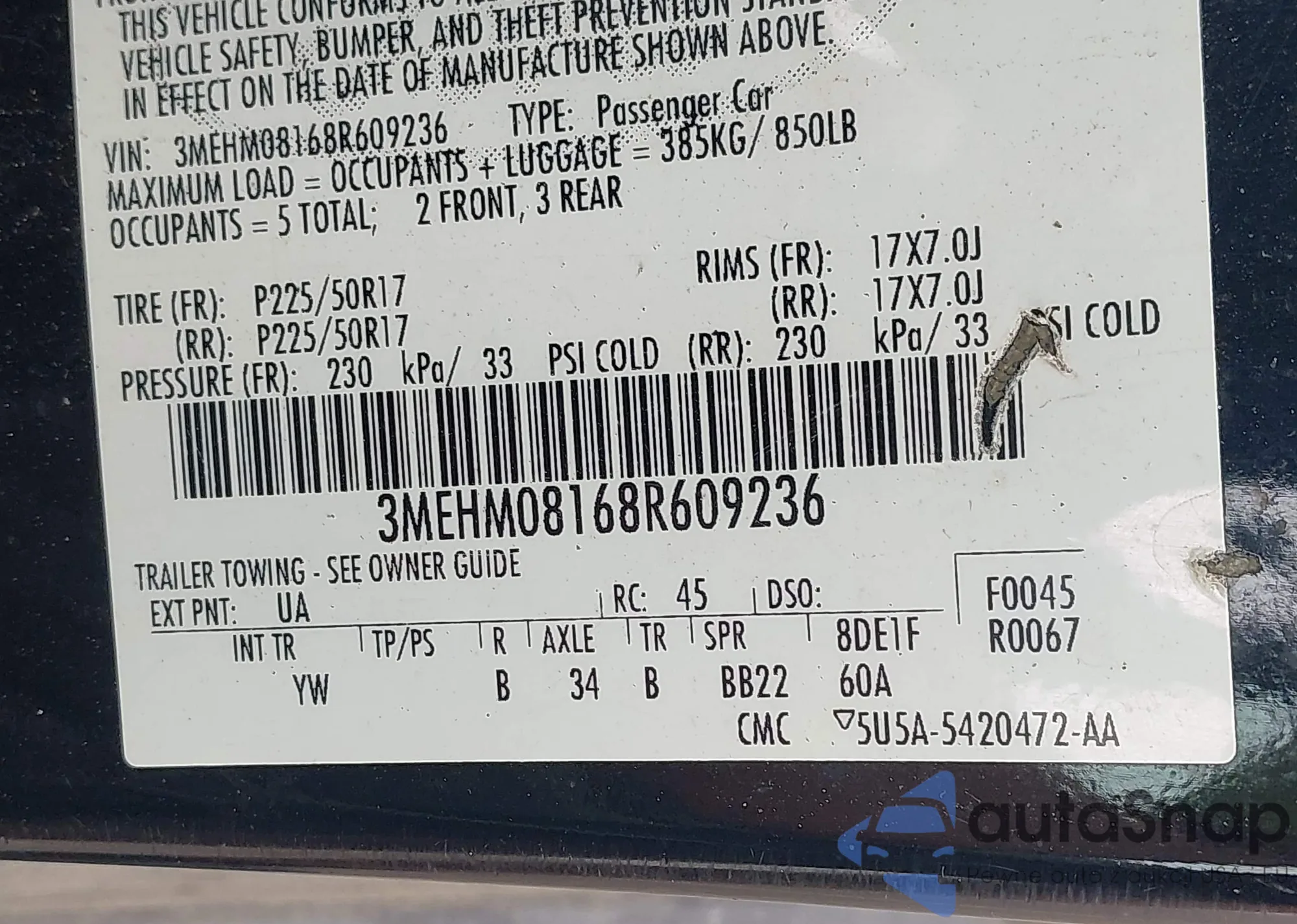 LOT: 43044468 VIN: 3MEHM08168R609236