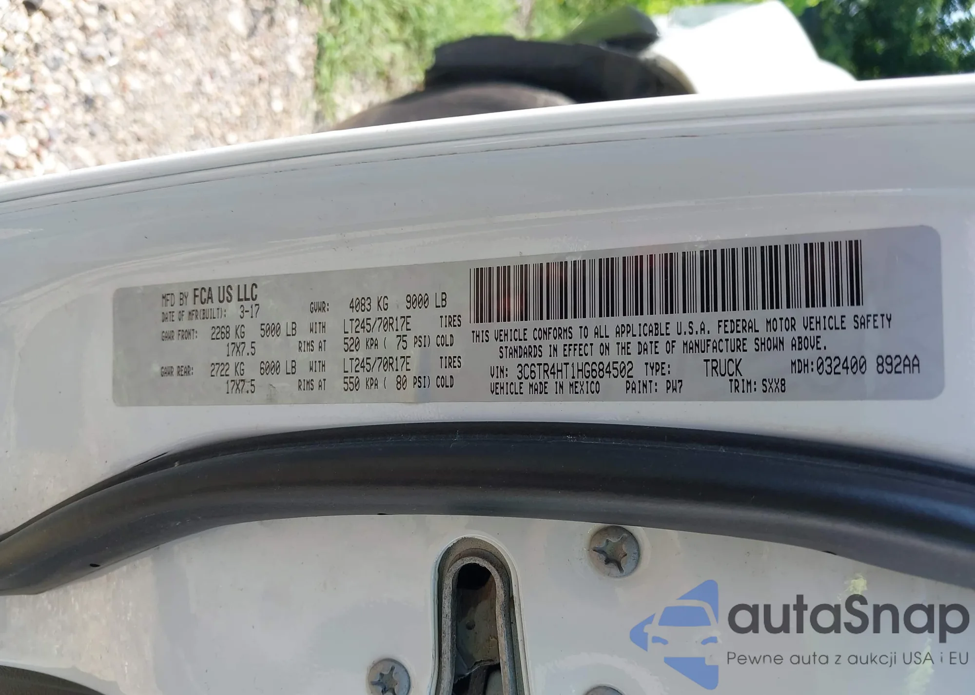 • VIN 3C6TR4HT1HG684502