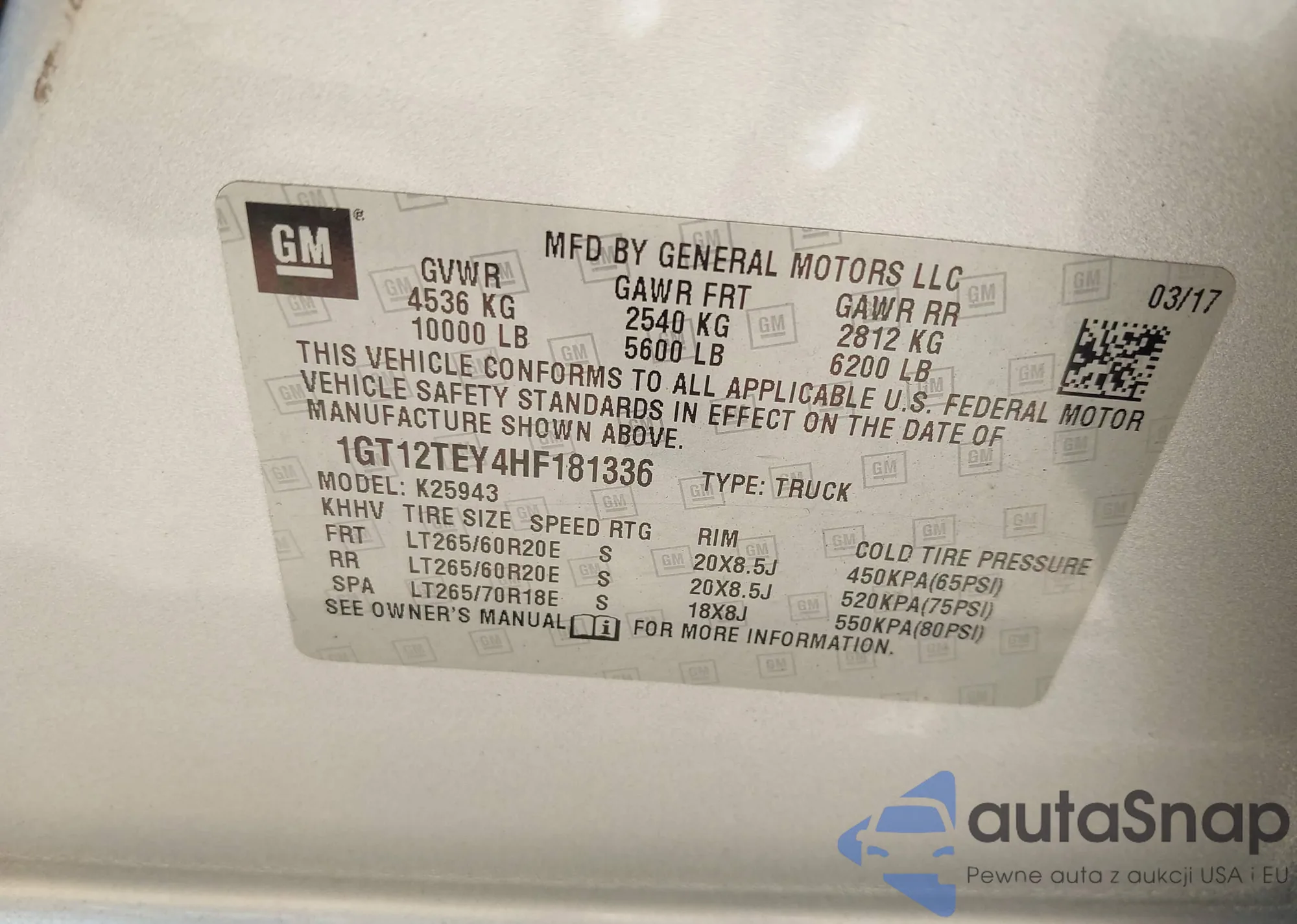 LOT: 42802069 VIN: 1GT12TEY4HF181336