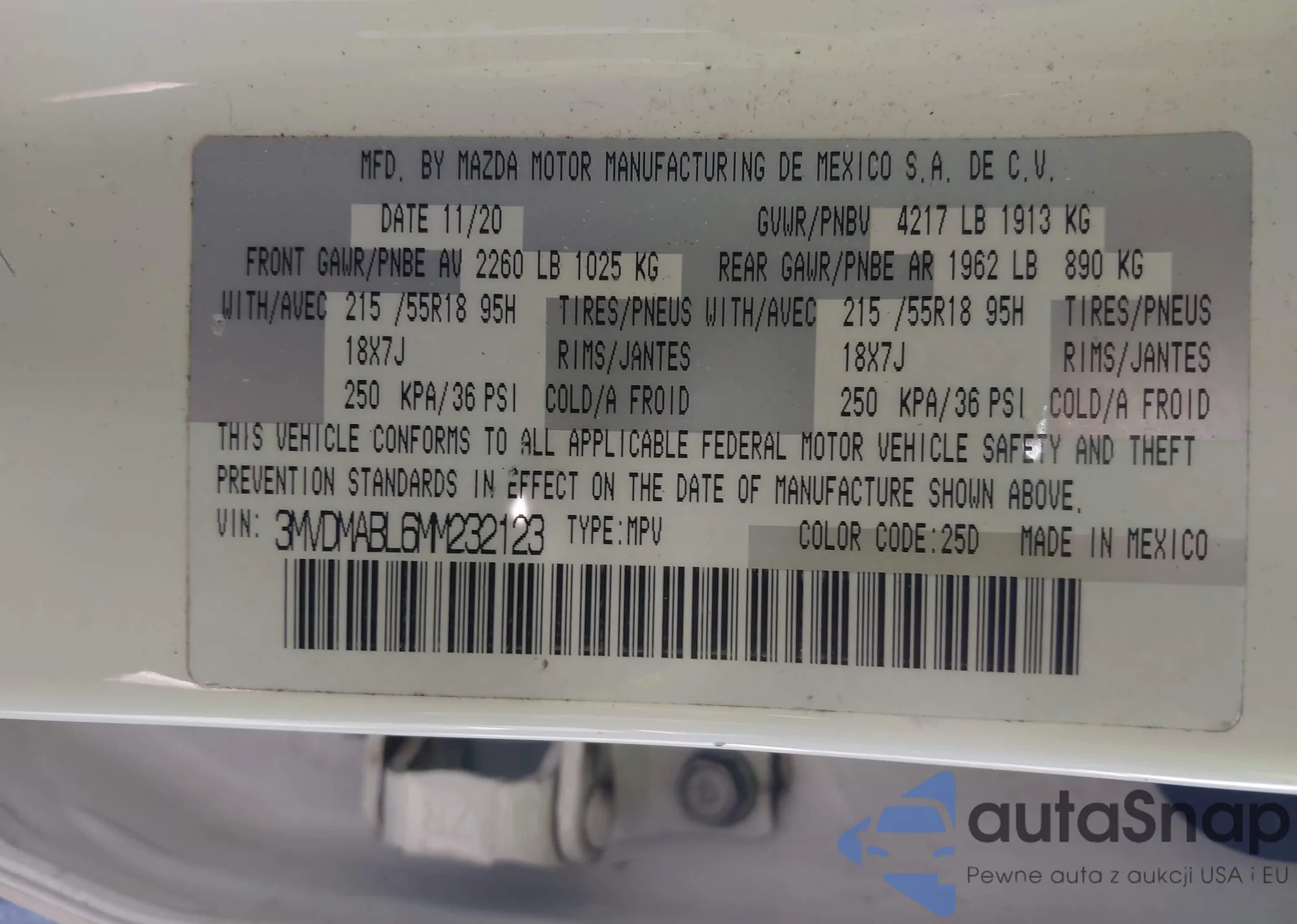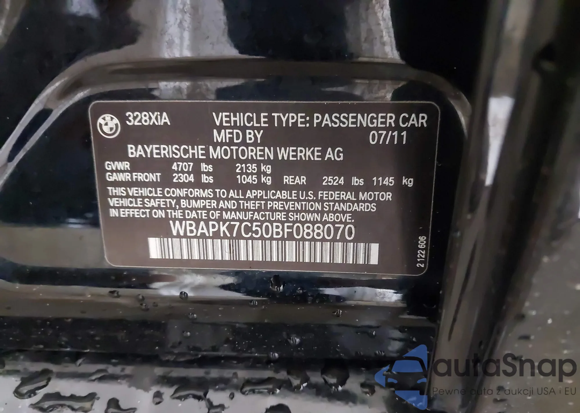 LOT: 42907481 VIN: WBAPK7C50BF088070