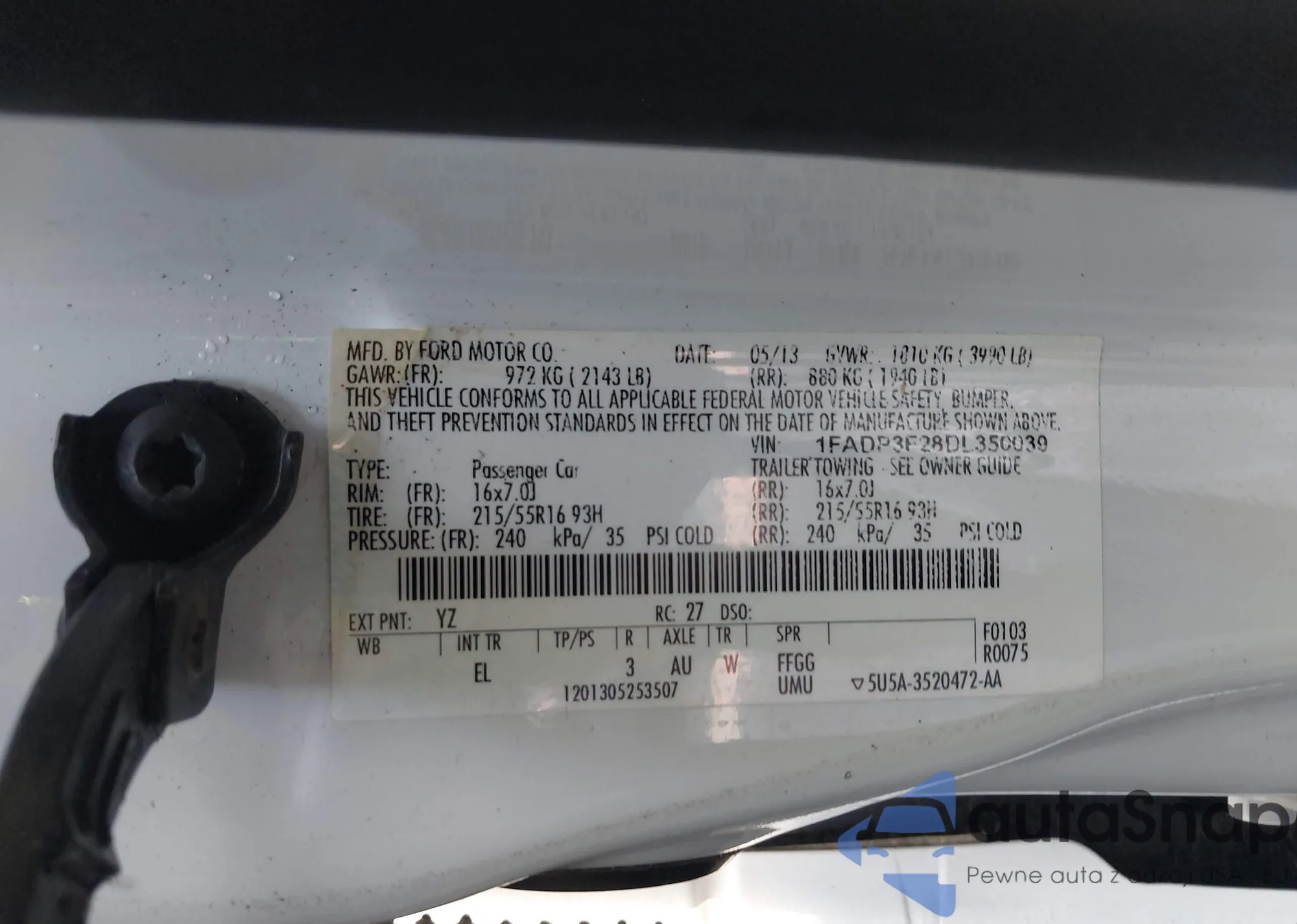 LOT: 42722285 VIN: 1FADP3F28DL350039