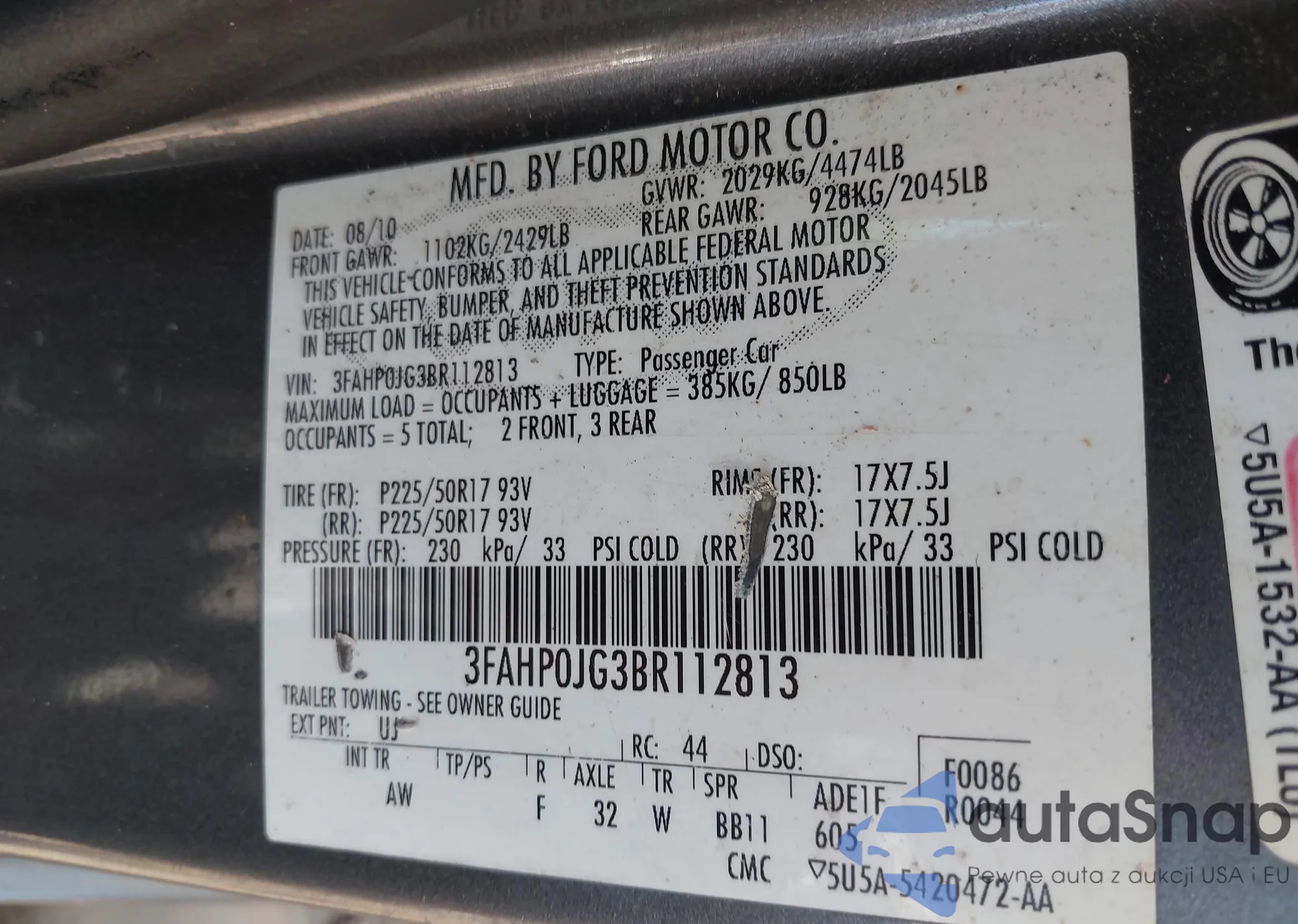 • VIN 3FAHP0JG3BR112813