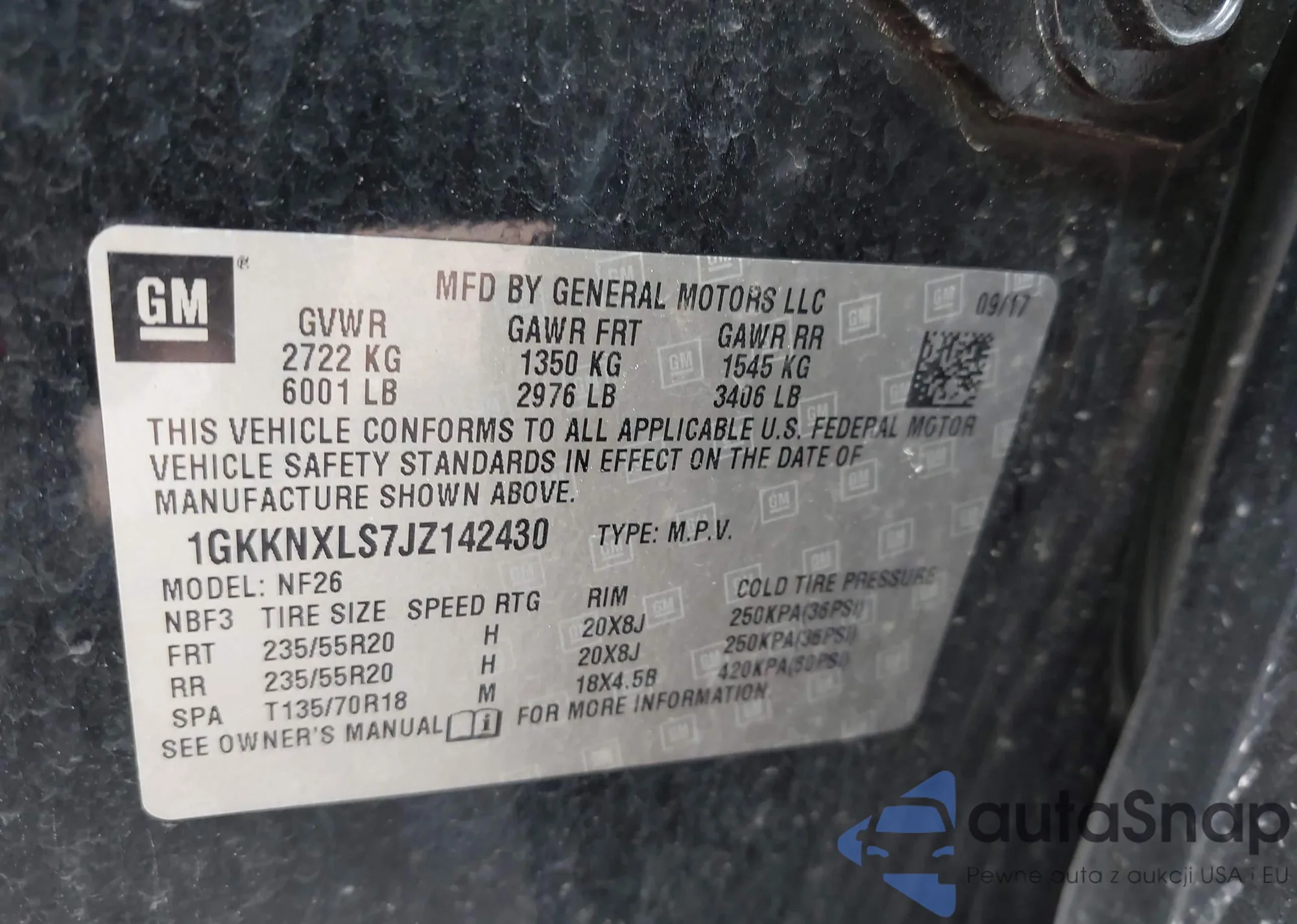 LOT: 42901387 VIN: 1GKKNXLS7JZ142430
