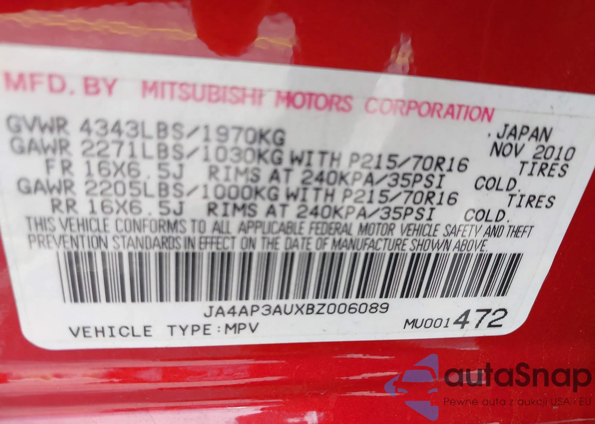 LOT: 42423178 VIN: 3KPF24AD1KE066855