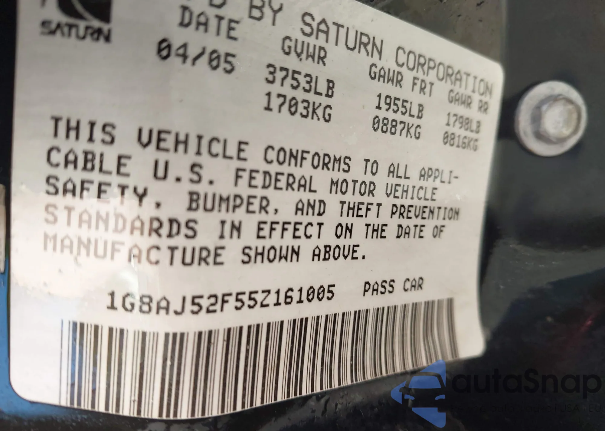 • VIN 1G8AJ52F55Z161005