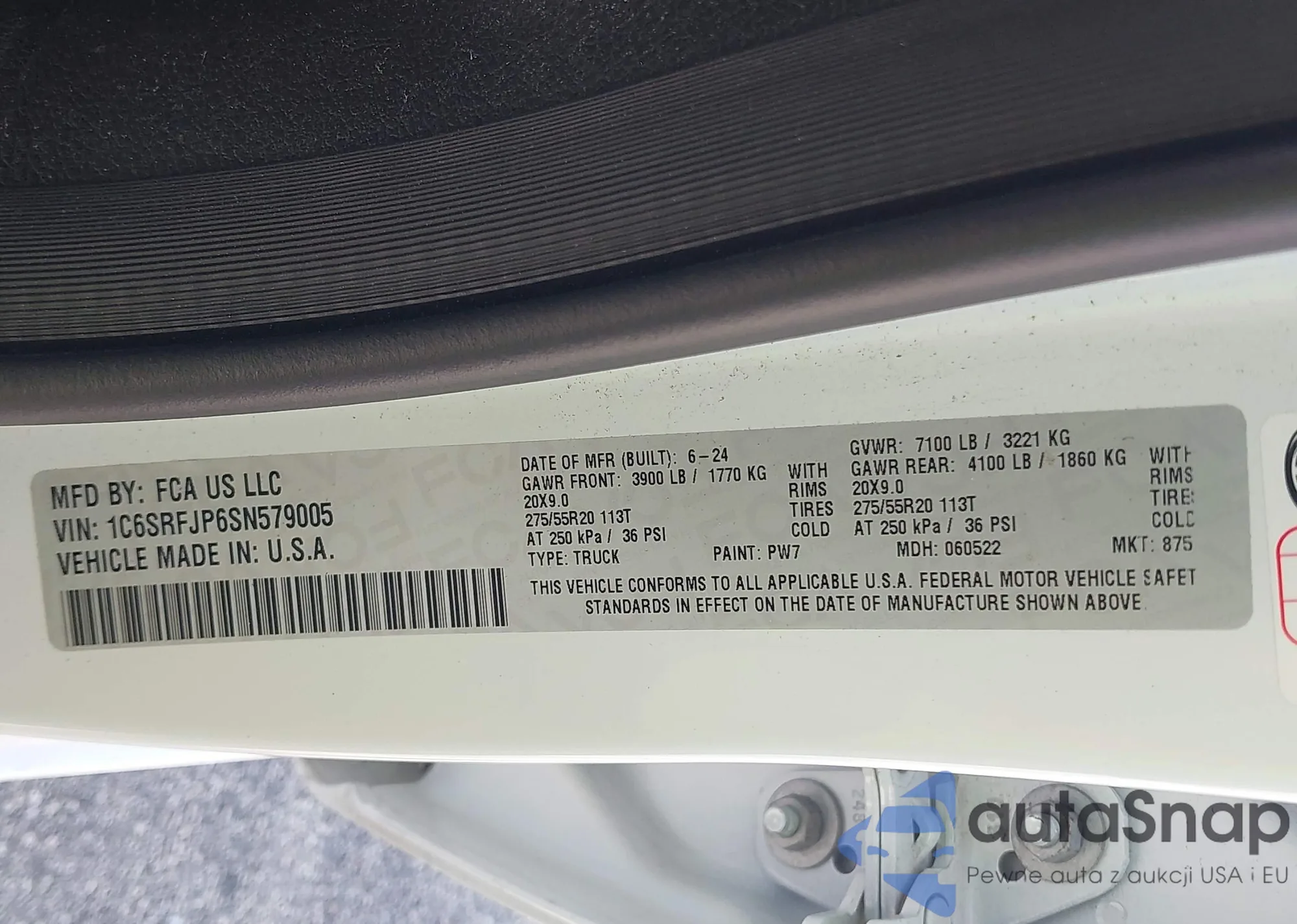 LOT: 42963748 VIN: 1C6SRFJP6SN579005
