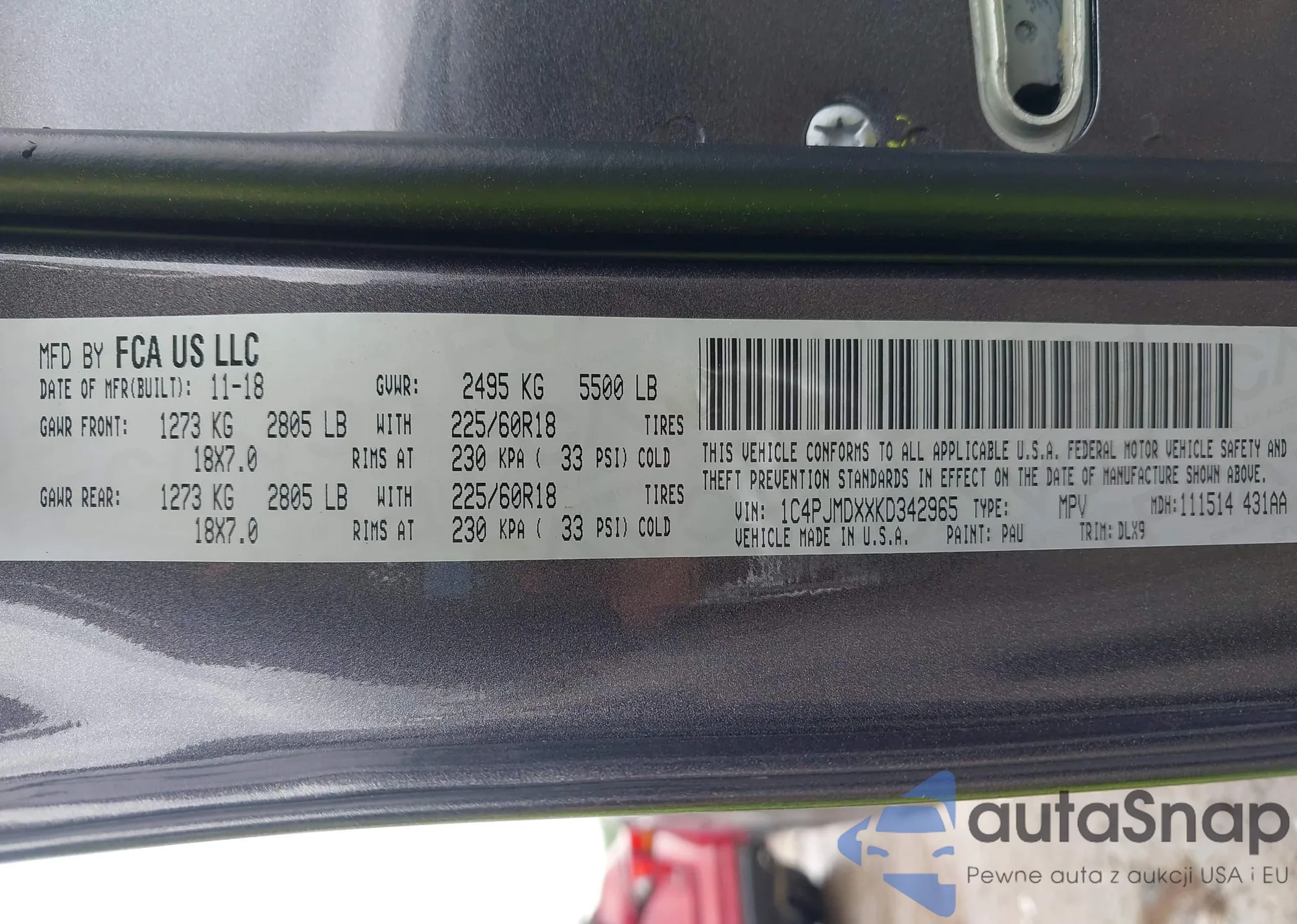LOT: 42354571 VIN: JM3KFBDM2K0525409