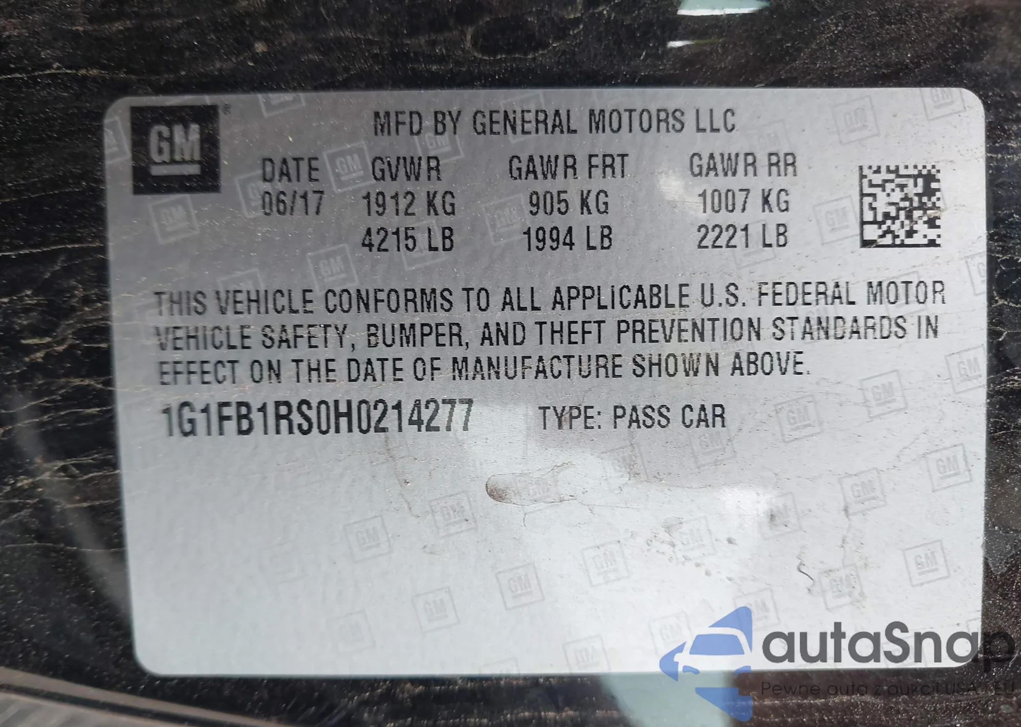 LOT: 42717332 VIN: 1G1FB1RS0H0214277