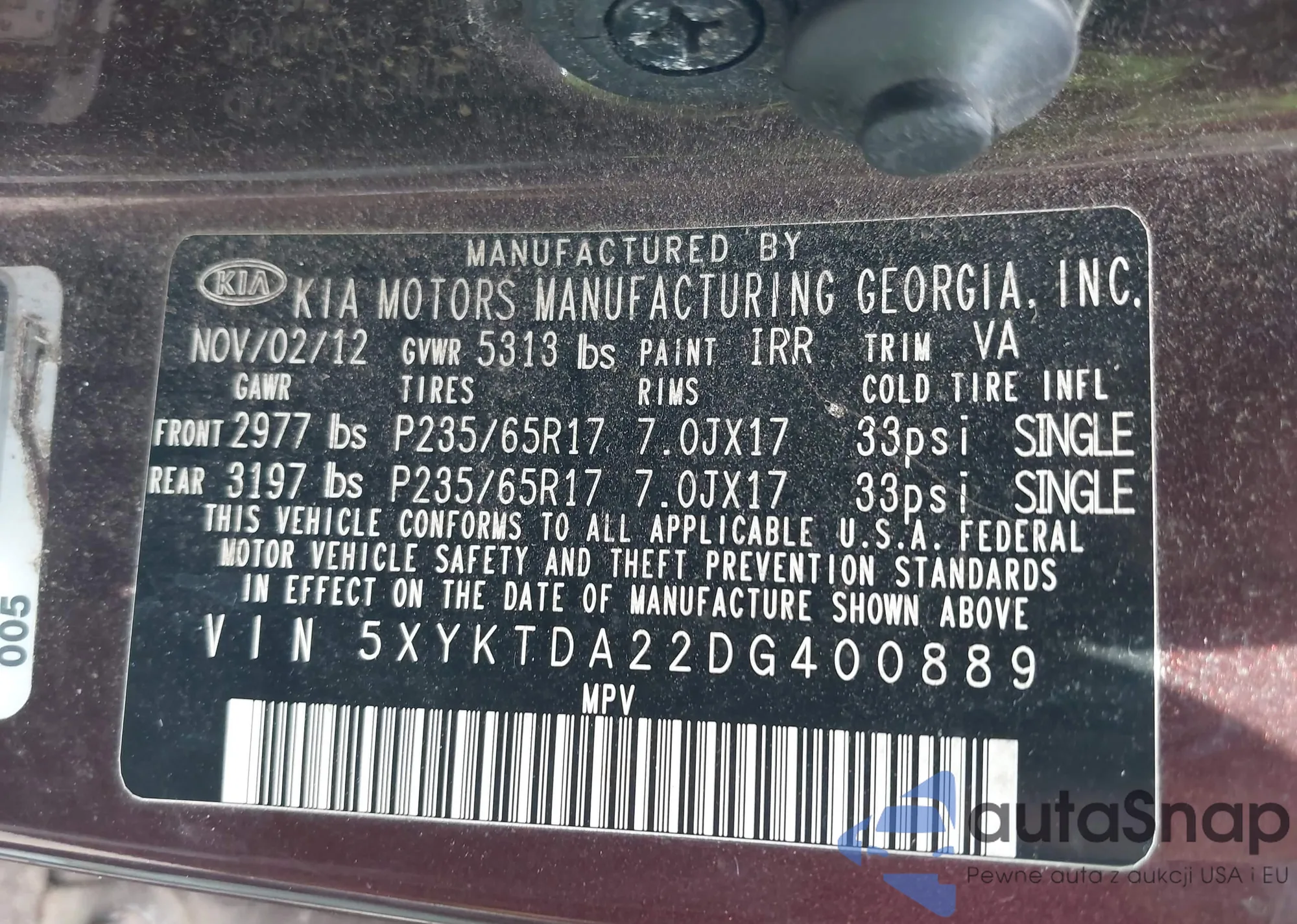 LOT: 42717441 VIN: 1FAHP2EW3CG107648