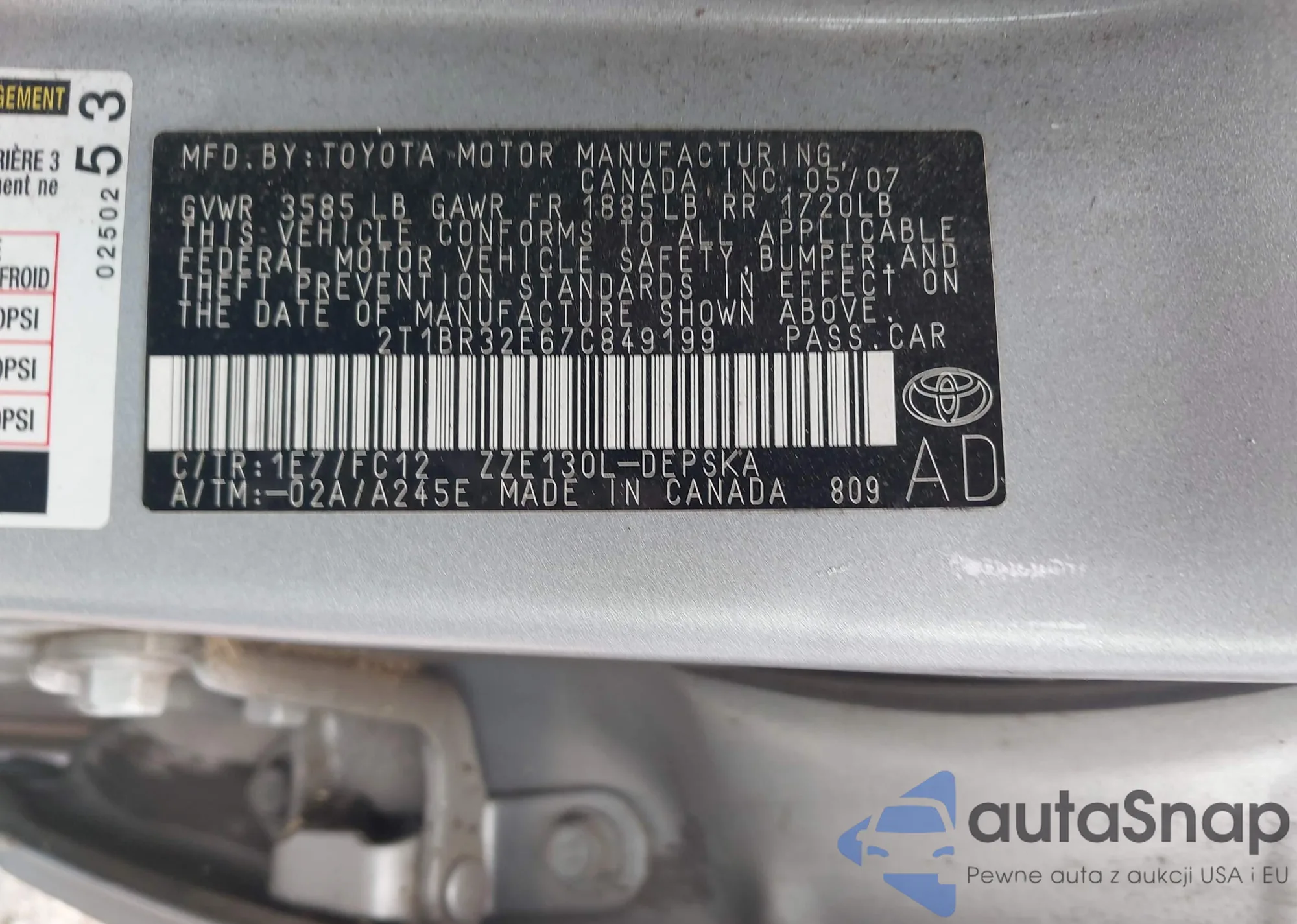 • VIN 2T1BR32E67C849199