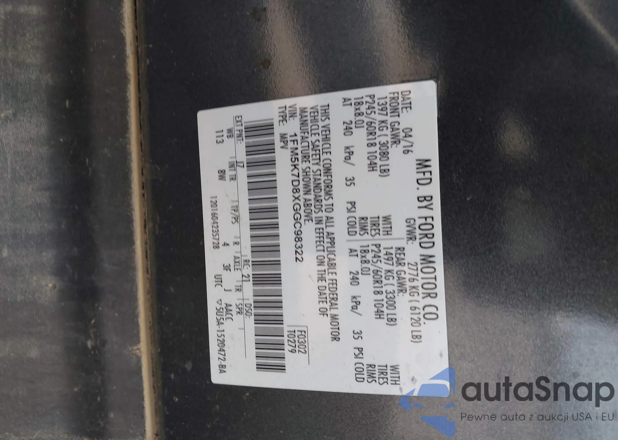 • VIN 1FM5K8GT0HGD09660