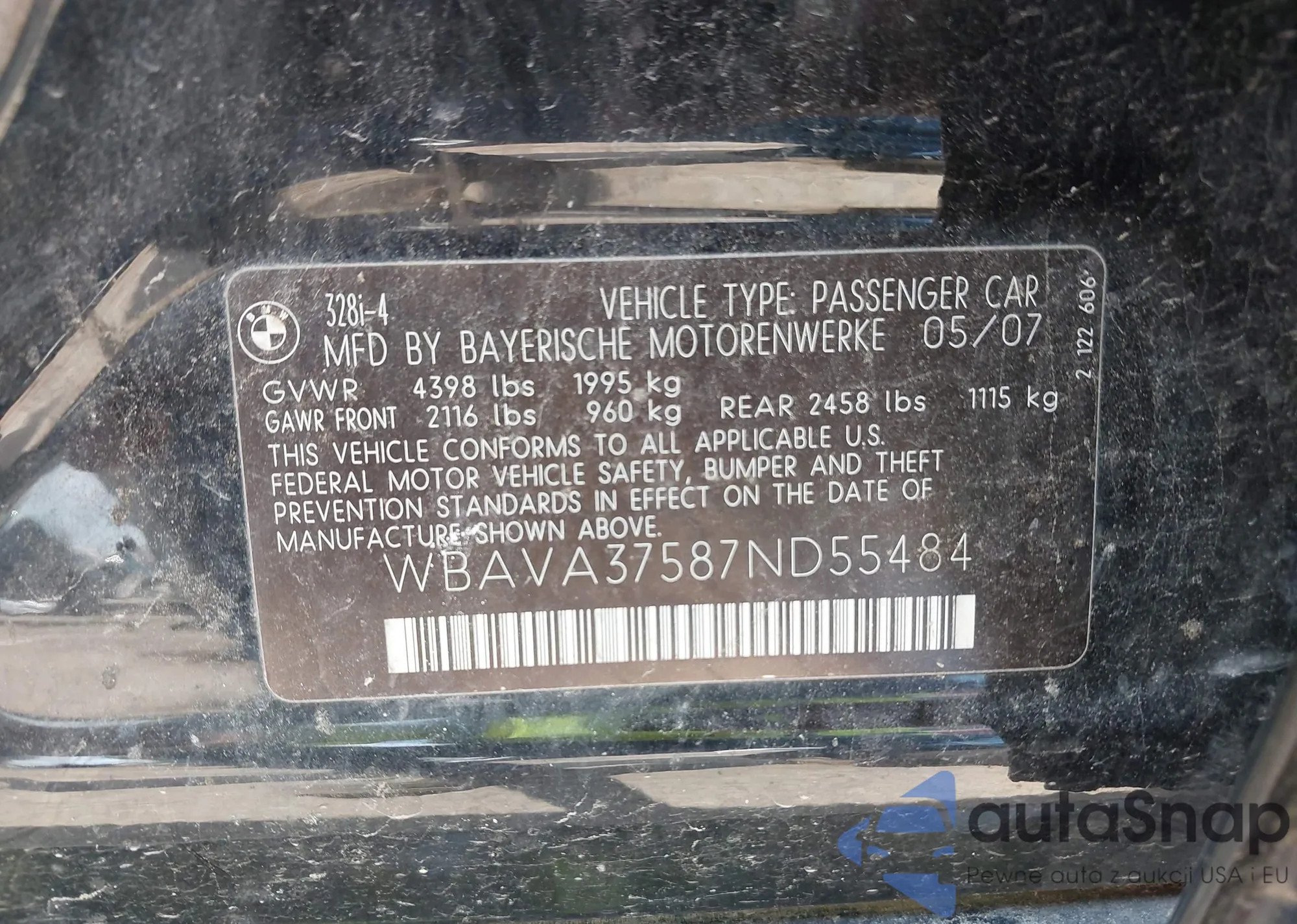 LOT: 42720156 VIN: WBAVA37587ND55484
