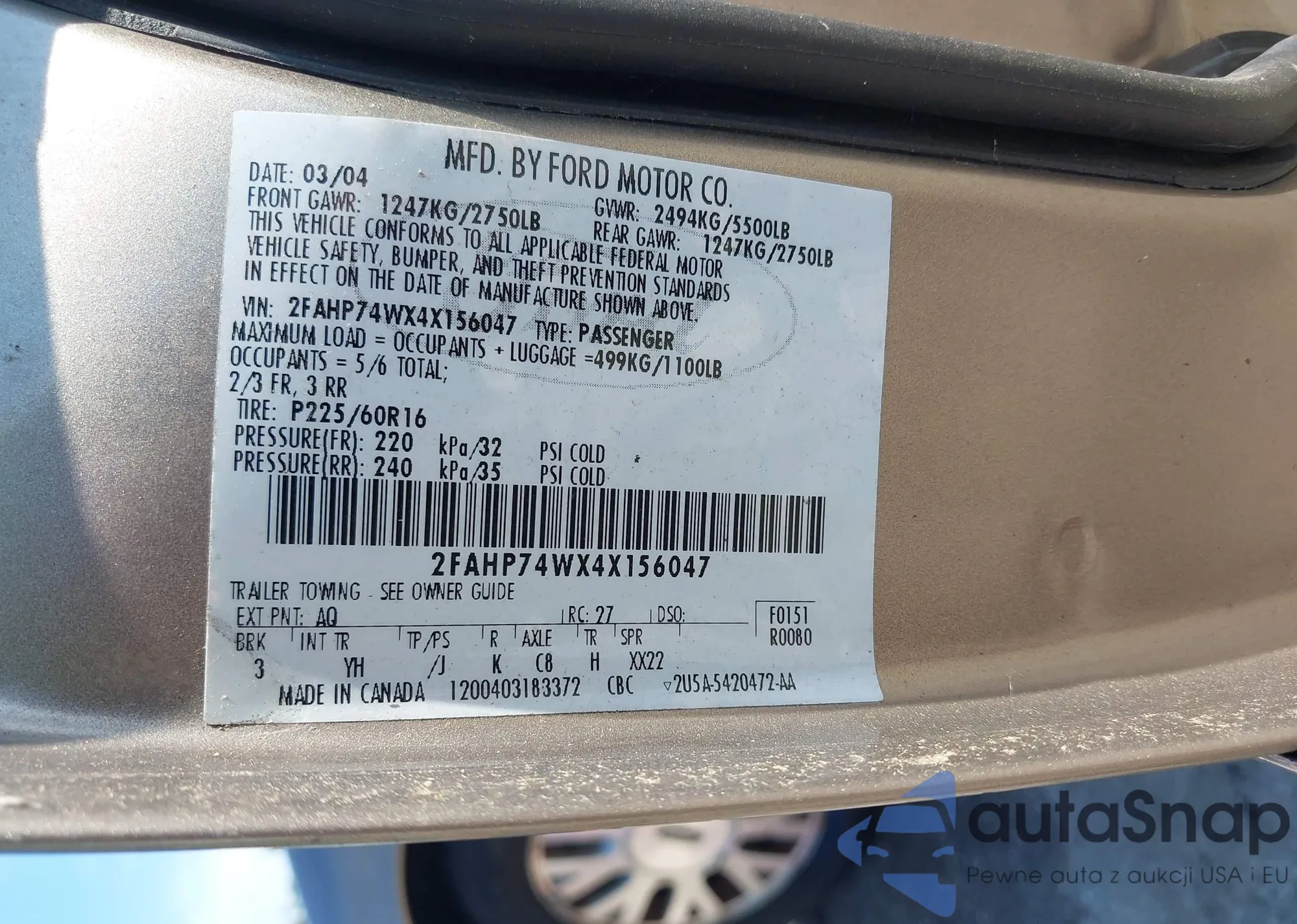 • VIN 2FAHP74WX4X156047