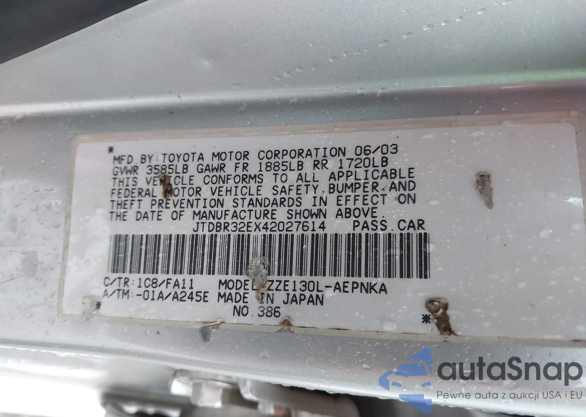 LOT: 42936878 VIN: 1HGFA16887L076070