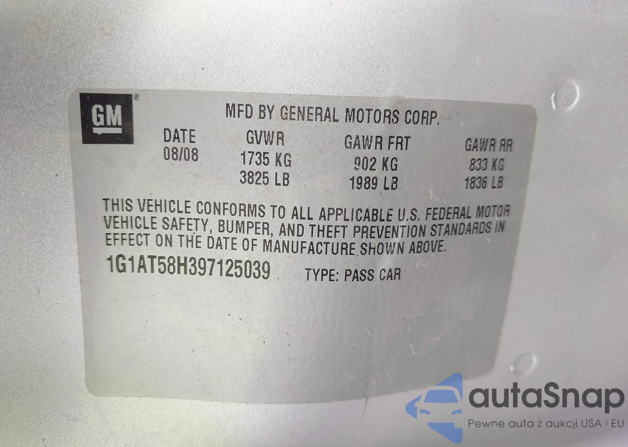 • VIN 1G1AT58H397125039