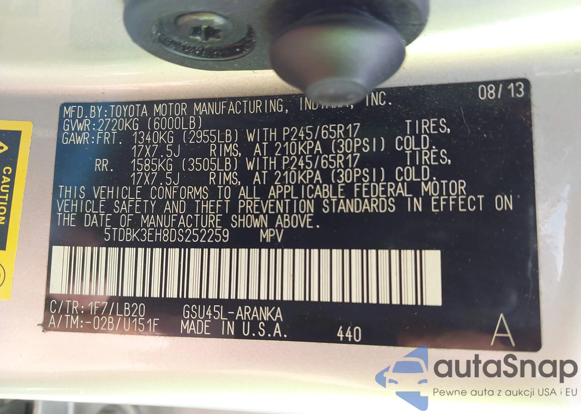 • VIN 5TDBK3EH8DS252259