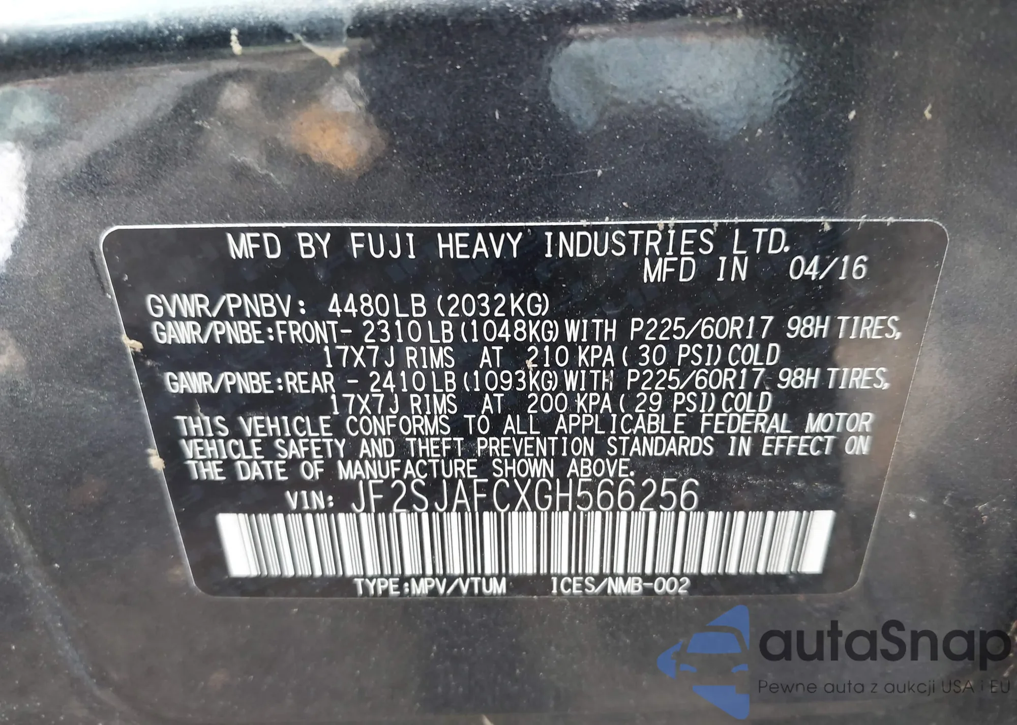 • VIN 5FNYF4H59DB041047