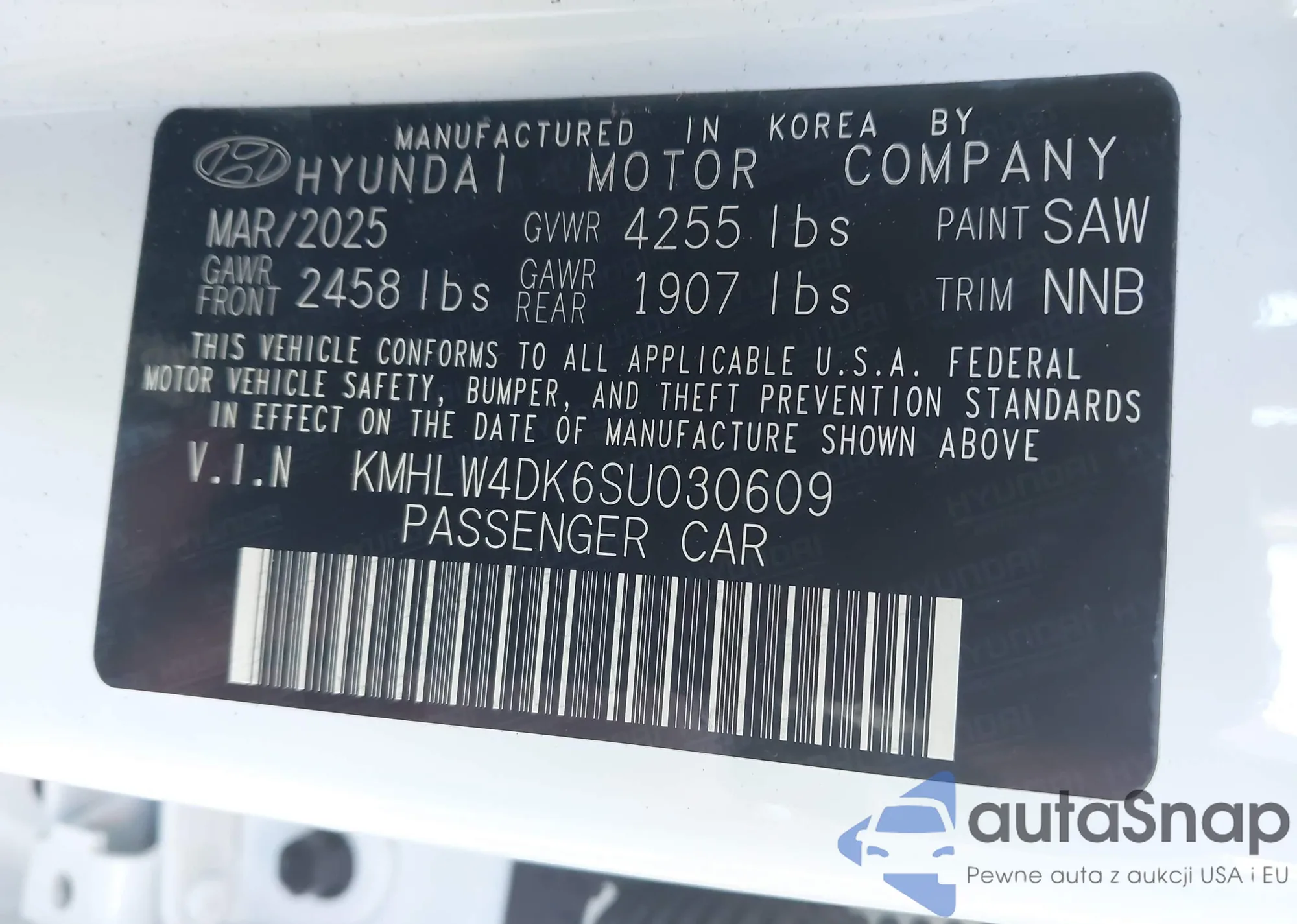 • VIN KMHLW4DK6SU030609