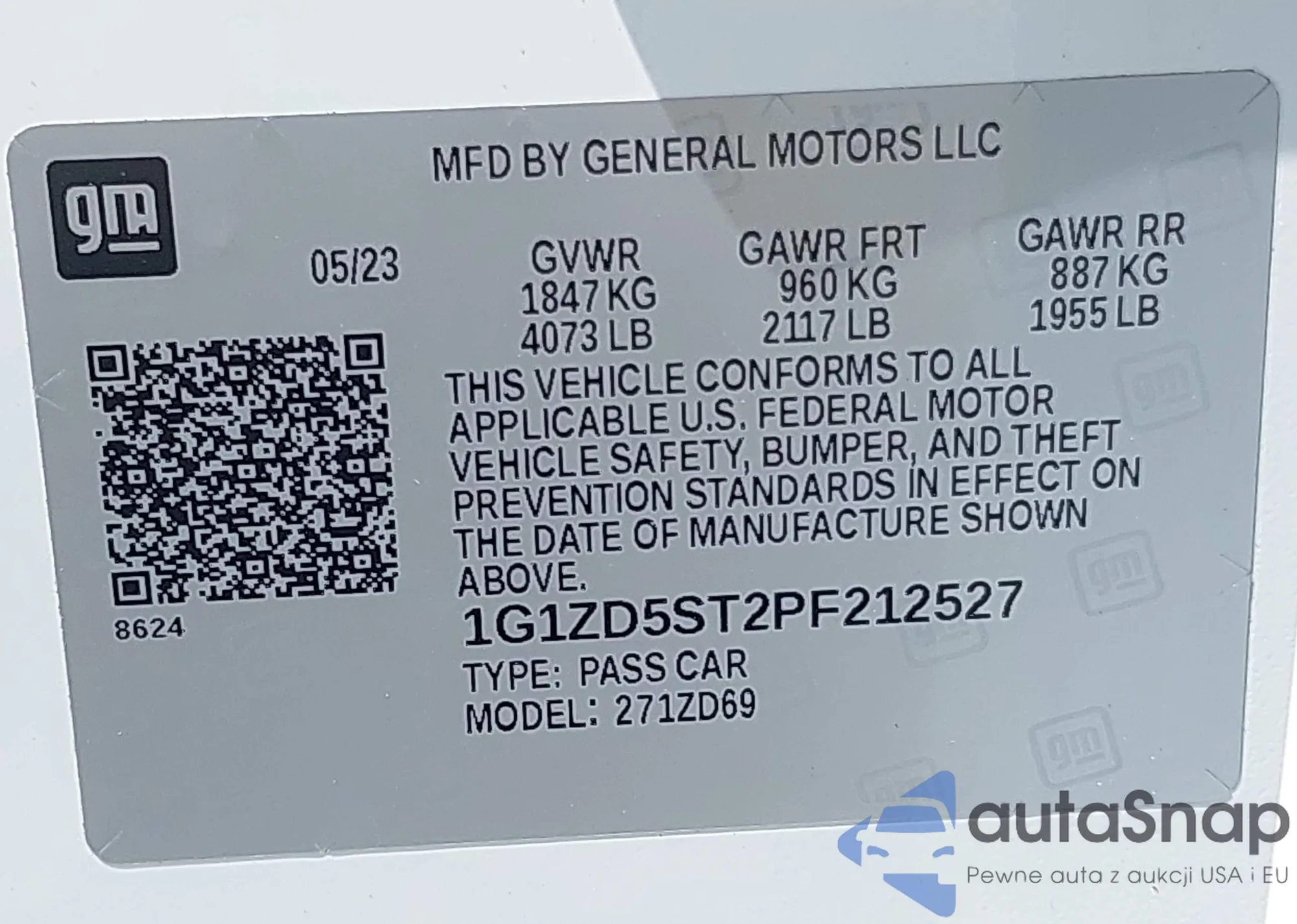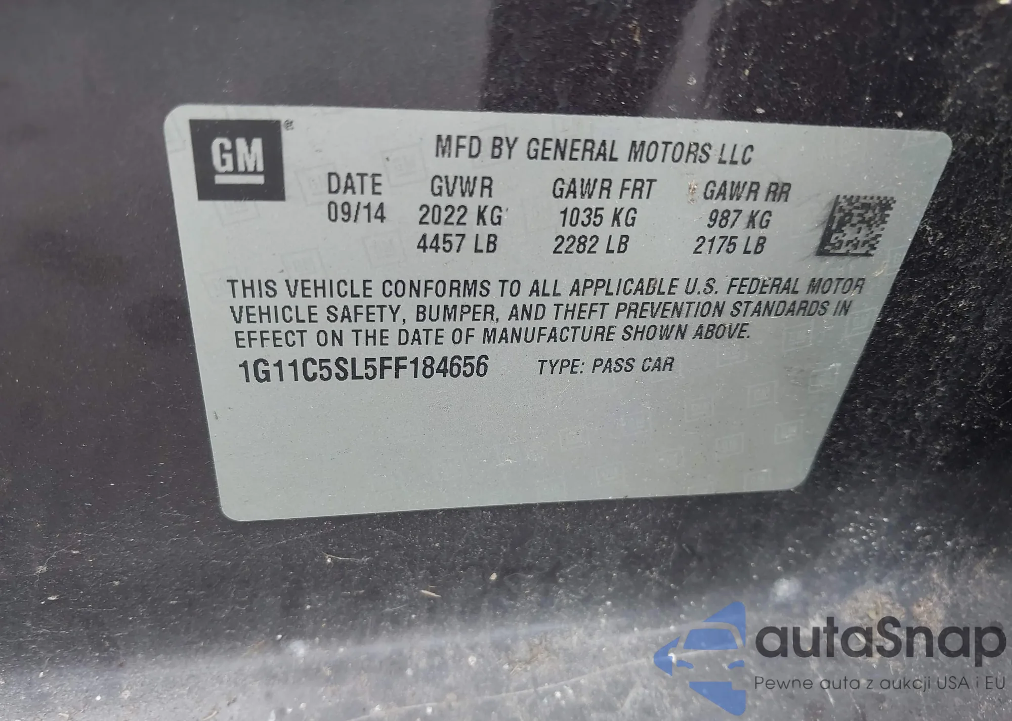 LOT: 42838528 VIN: 1G11C5SL5FF184656