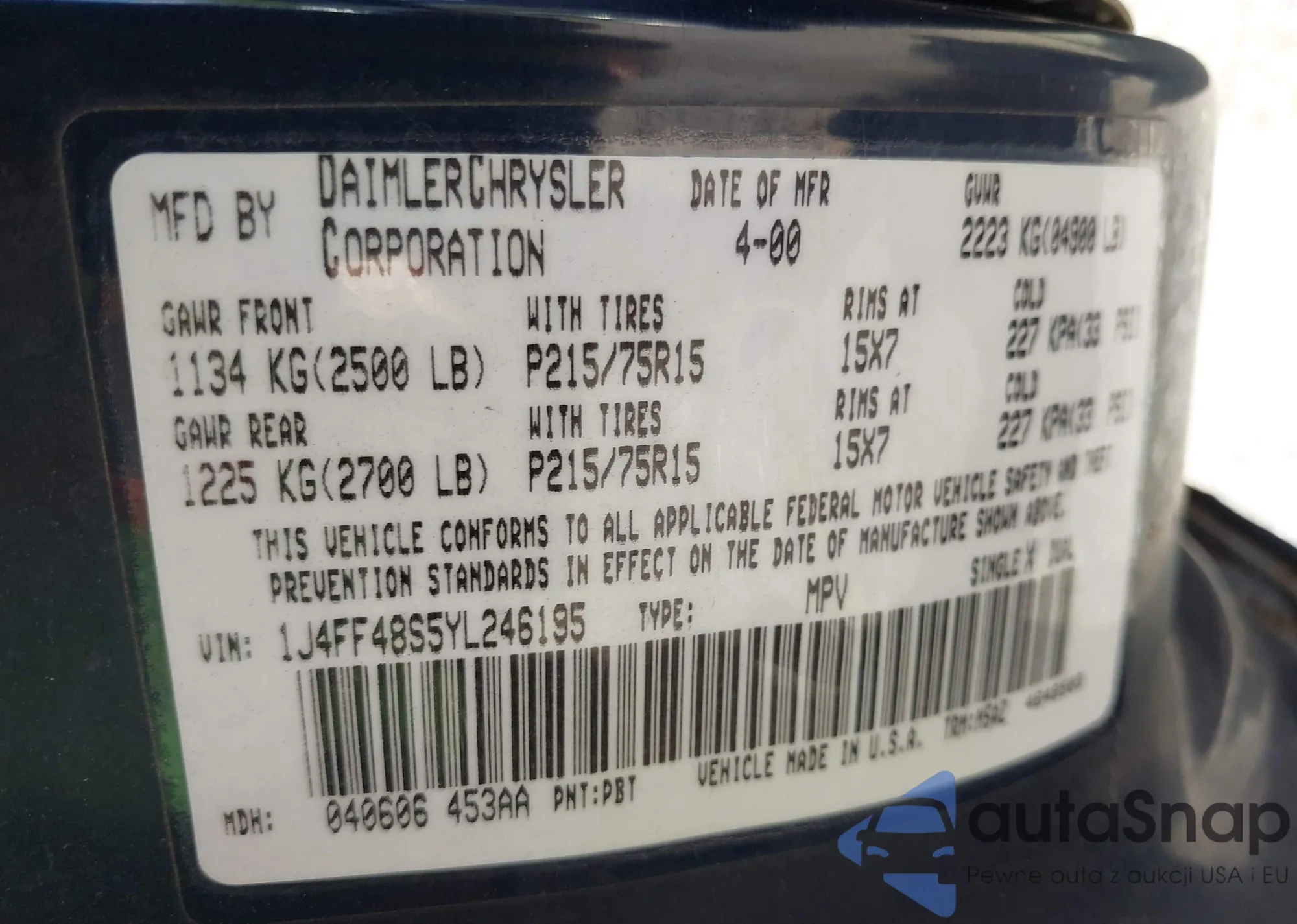 • VIN 1J4FF48S5YL246195