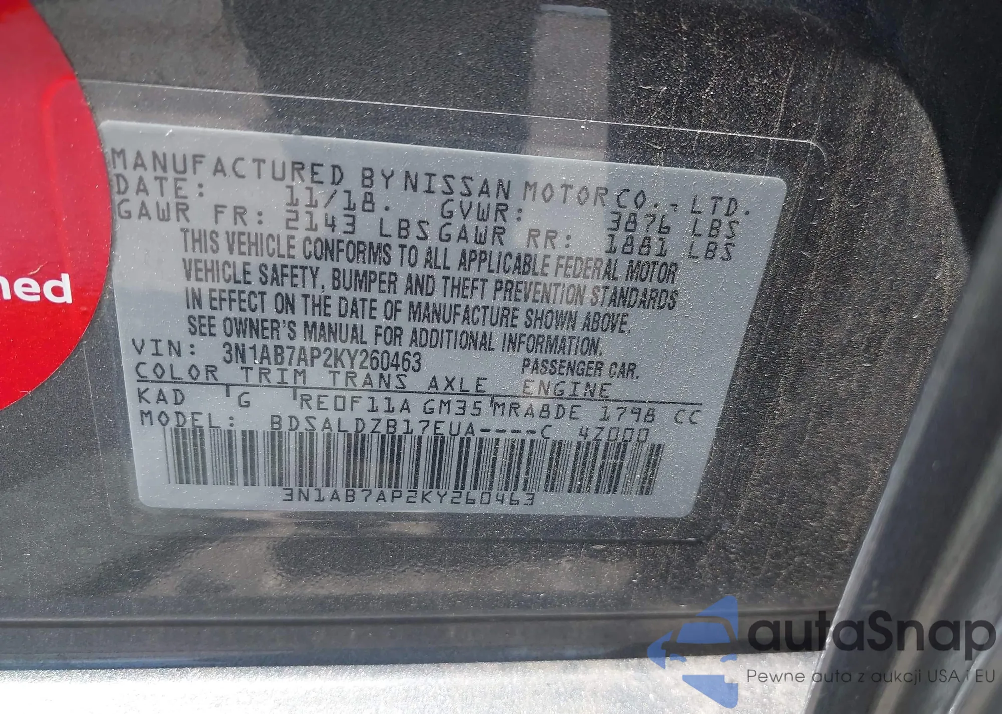 LOT: 42705935 VIN: JN1BJ1CR2HW102644