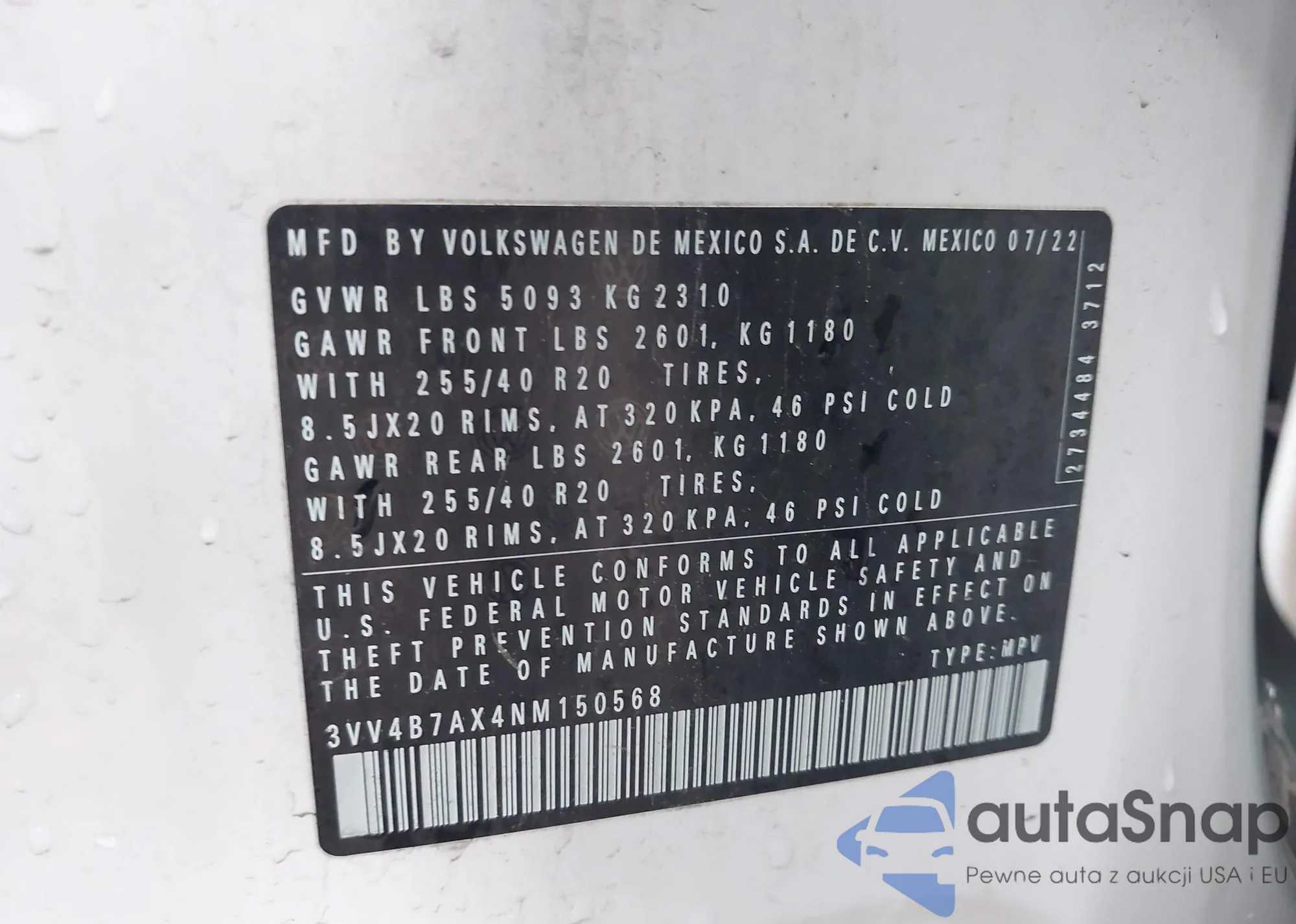 LOT: 42764676 VIN: 1V2RR2CA5MC568647