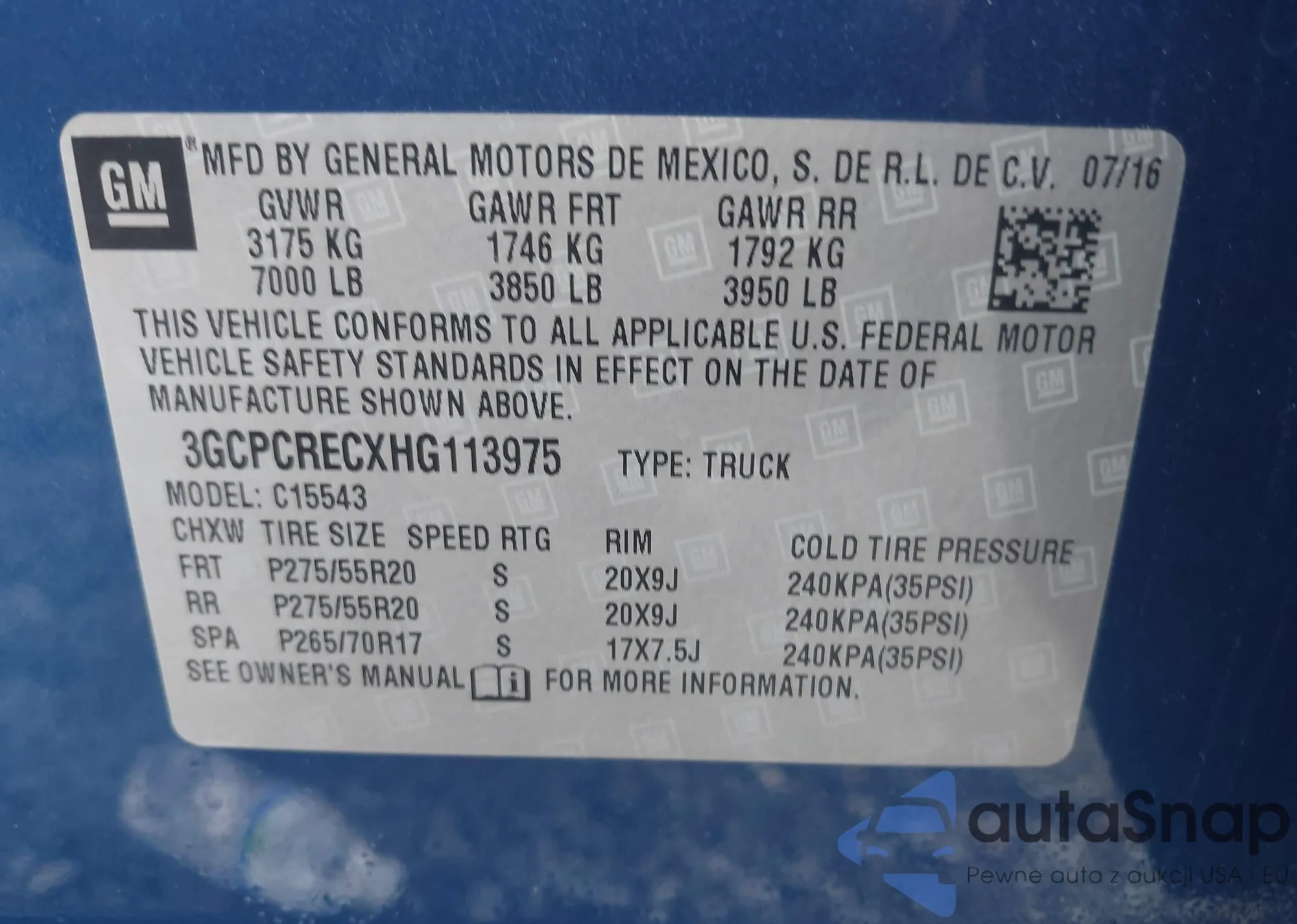 • VIN 3GCPCRECXHG113975