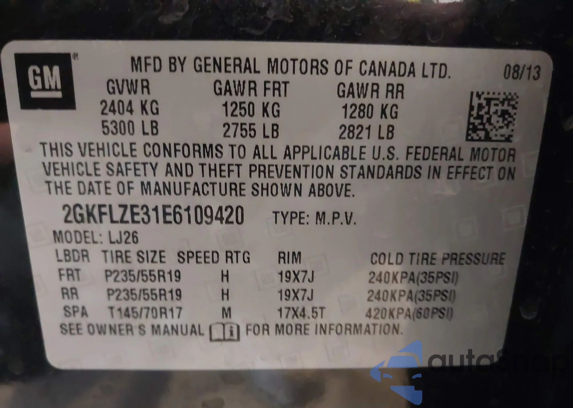 • VIN 2GKFLZE31E6109420