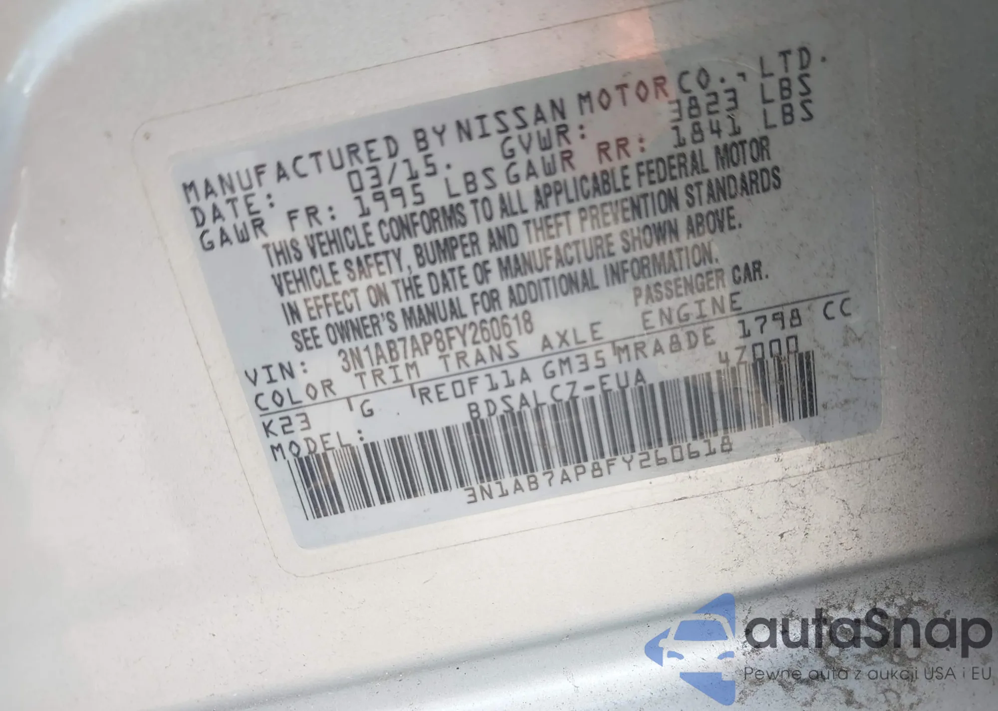 • VIN 3N1AB7AP8FY260618