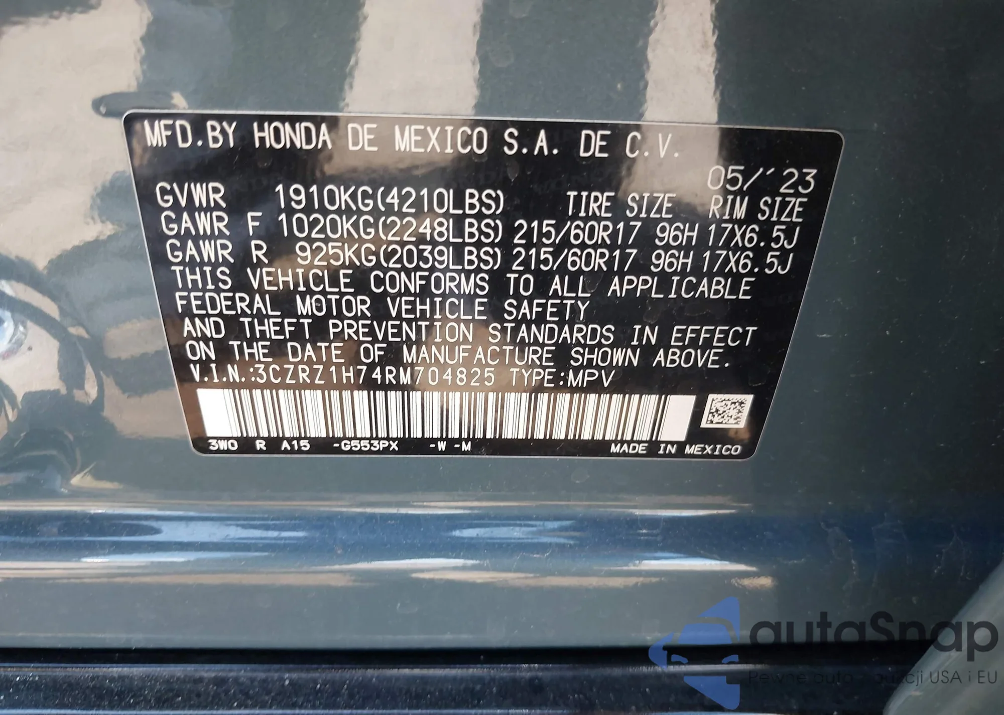 • VIN 3CZRZ1H74RM704825