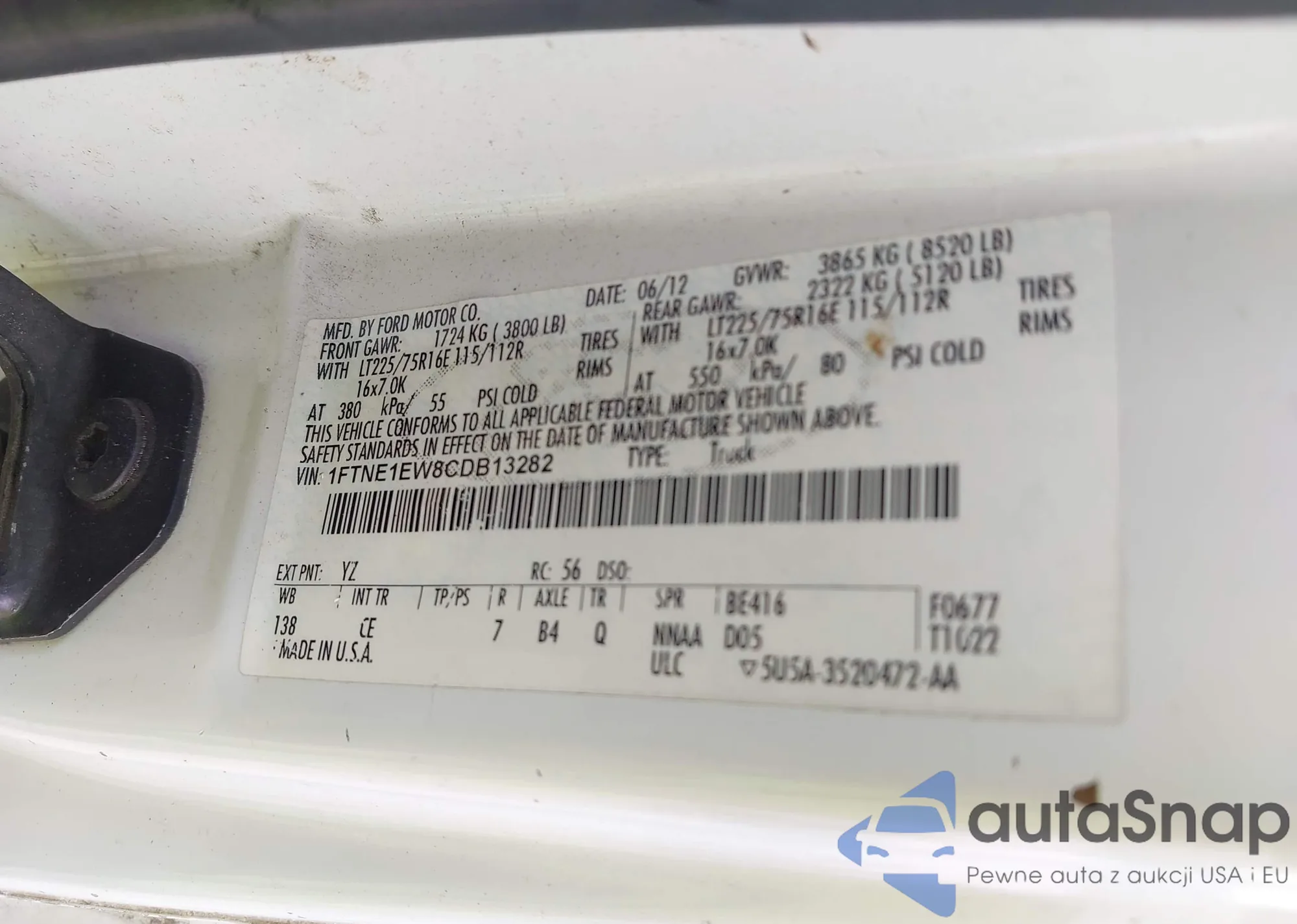 LOT: 42849921 VIN: 1FTNE1EW8CDB13282