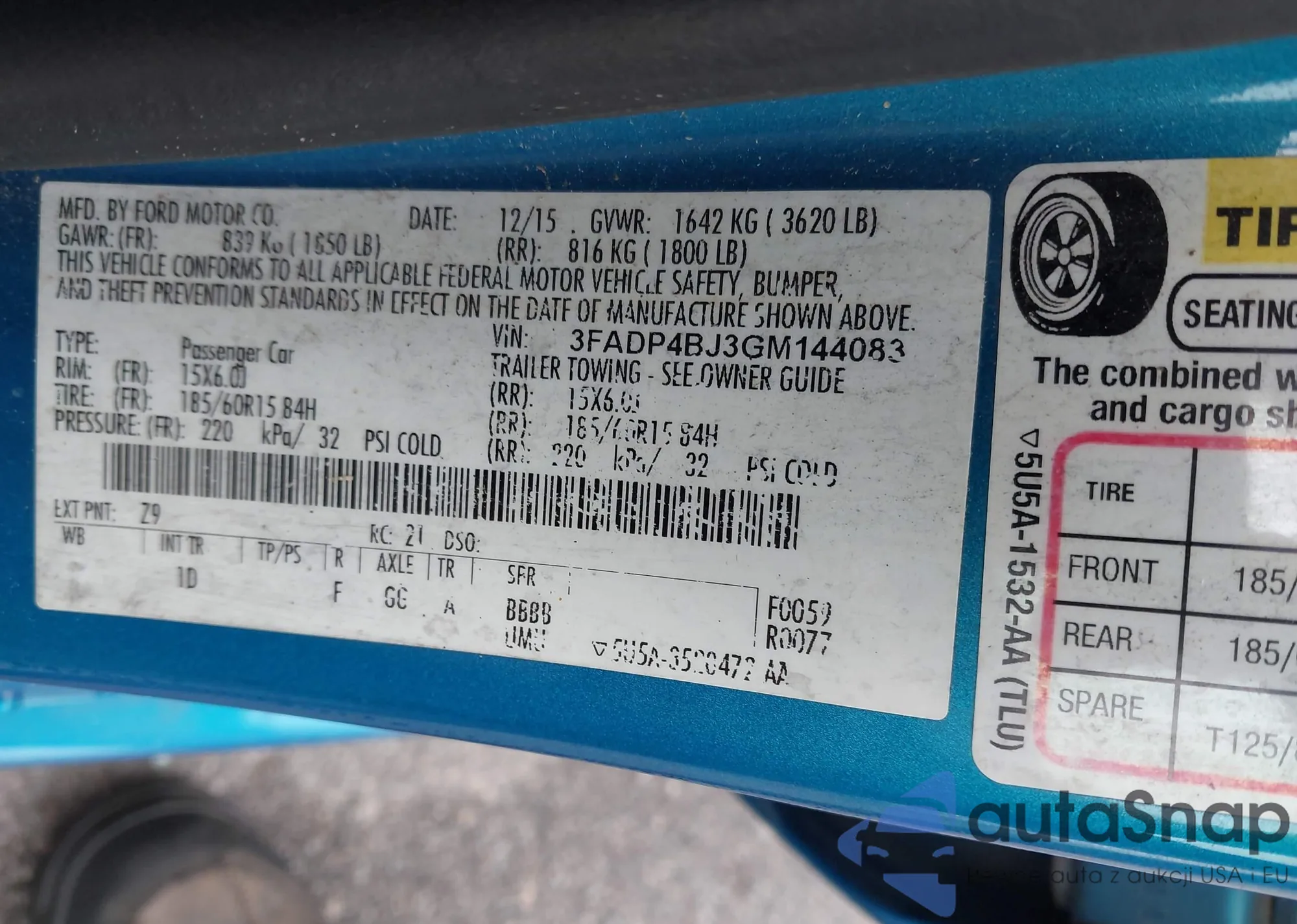 • VIN 3FADP4BJ3GM144083