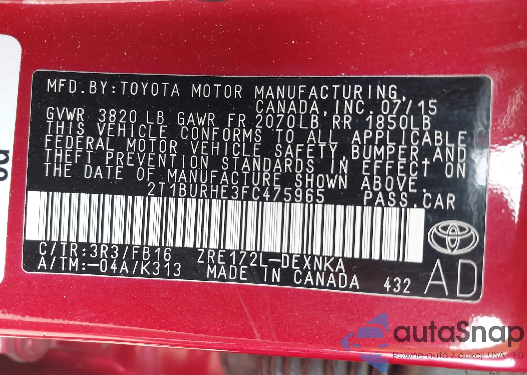 • VIN 2T1BURHE3FC475965