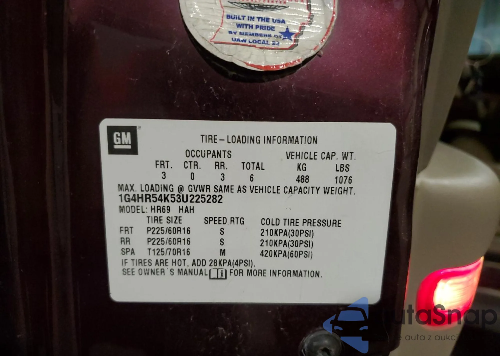 • VIN 1G4HR54K53U225282