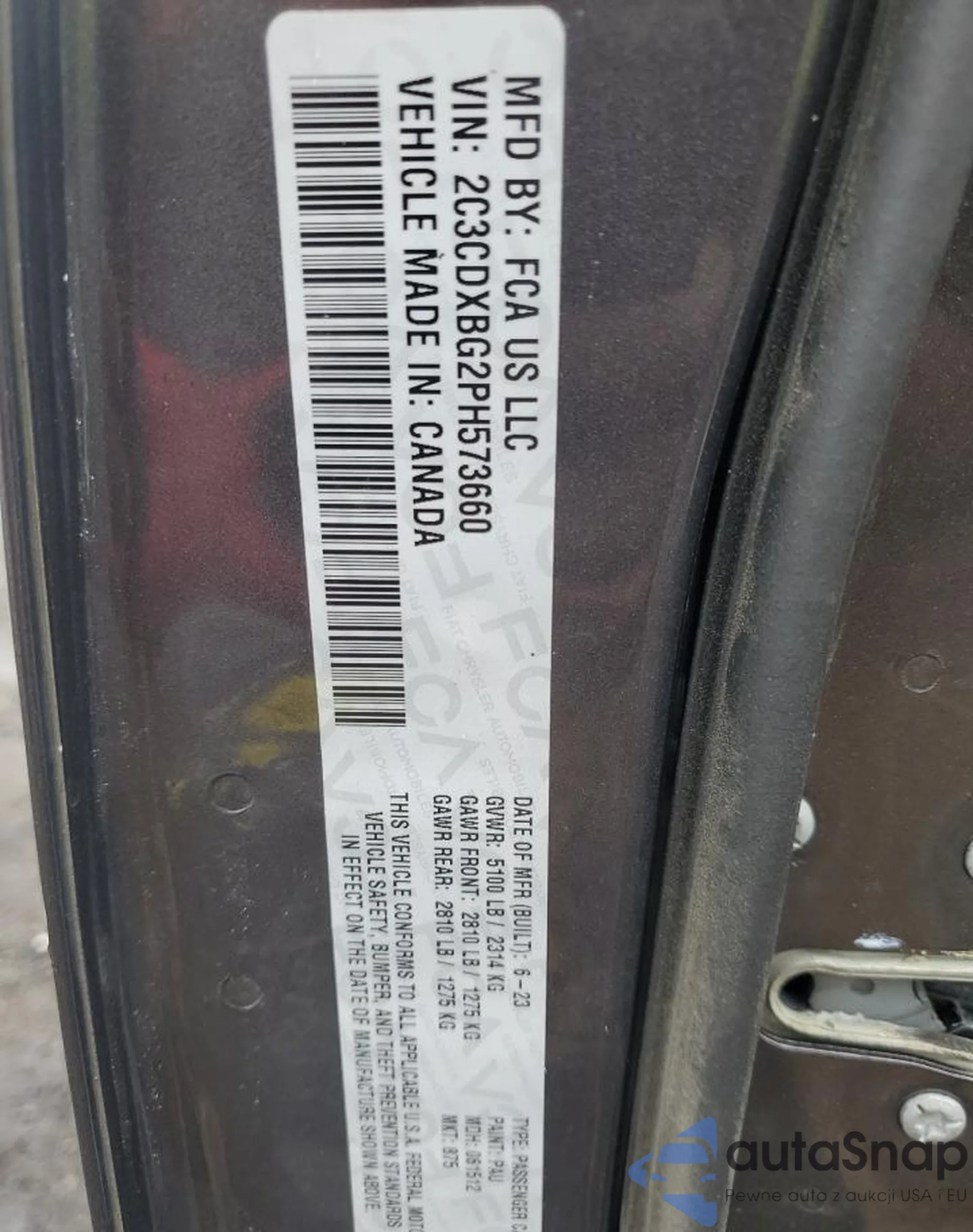 • VIN 2C3CDXBG2PH573660