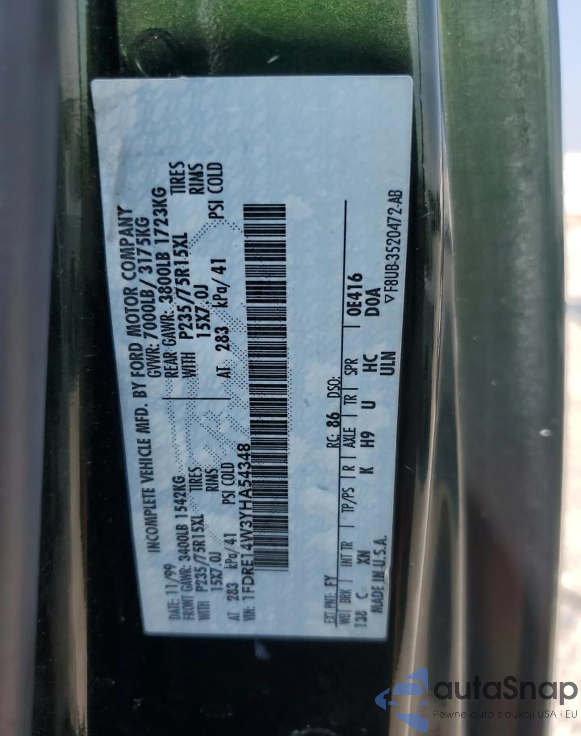 • VIN 1FDRE14W3YHA54348