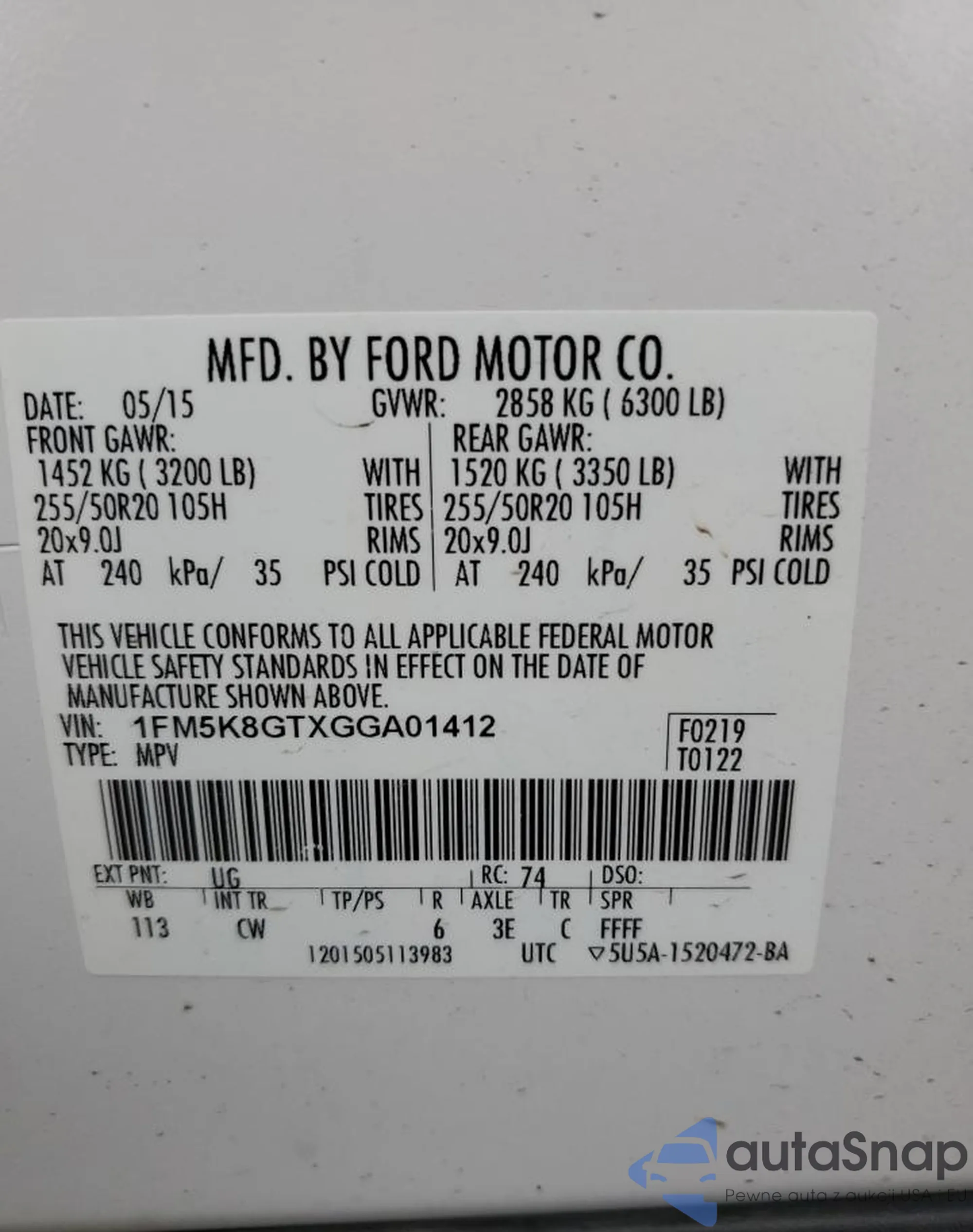 • VIN 5N1AR2MM3DC612745