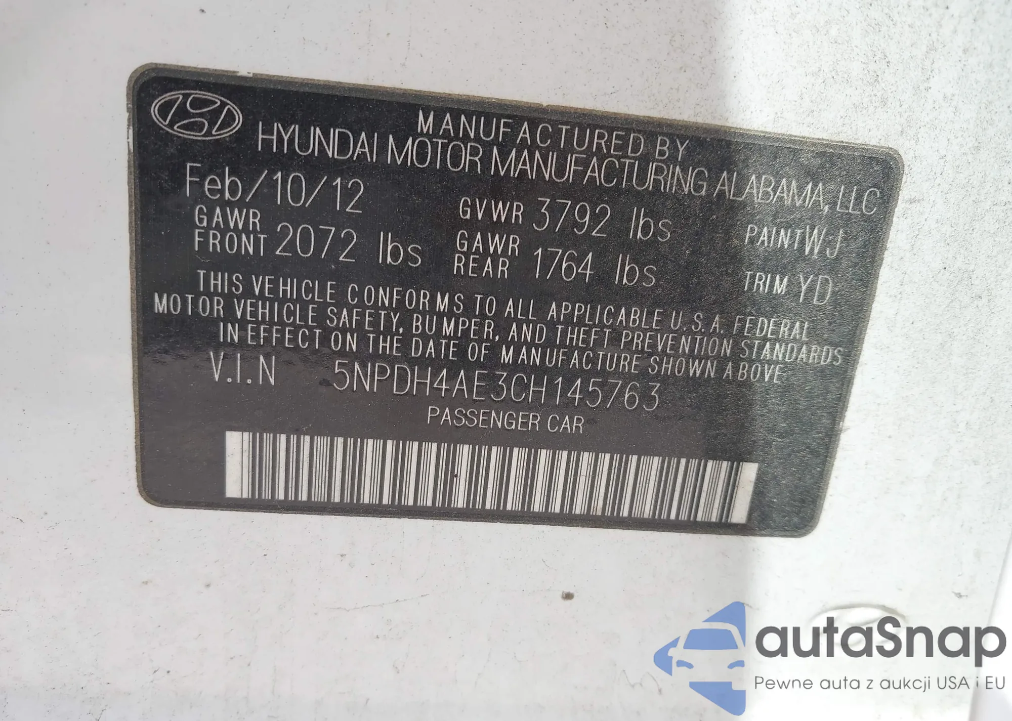 LOT: 42947059 VIN: 5NPDH4AE3CH145763