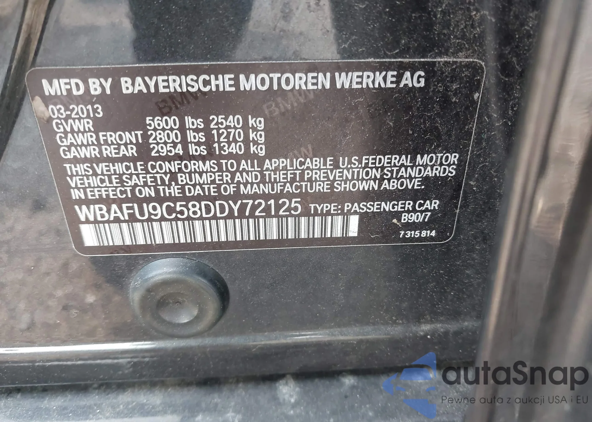 • VIN WBAFU9C58DDY72125