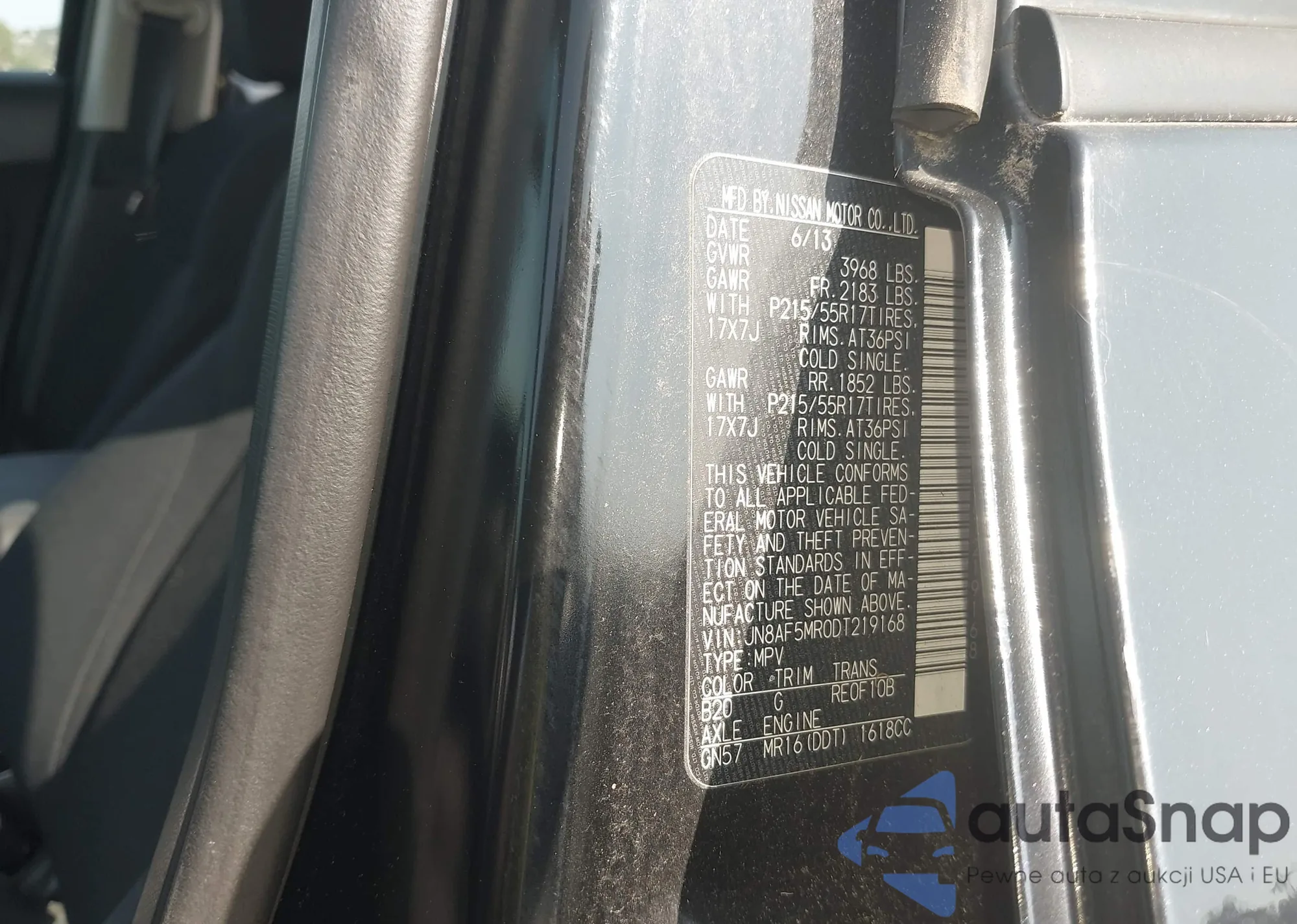 LOT: 42771096 VIN: JN8AF5MR0DT219168