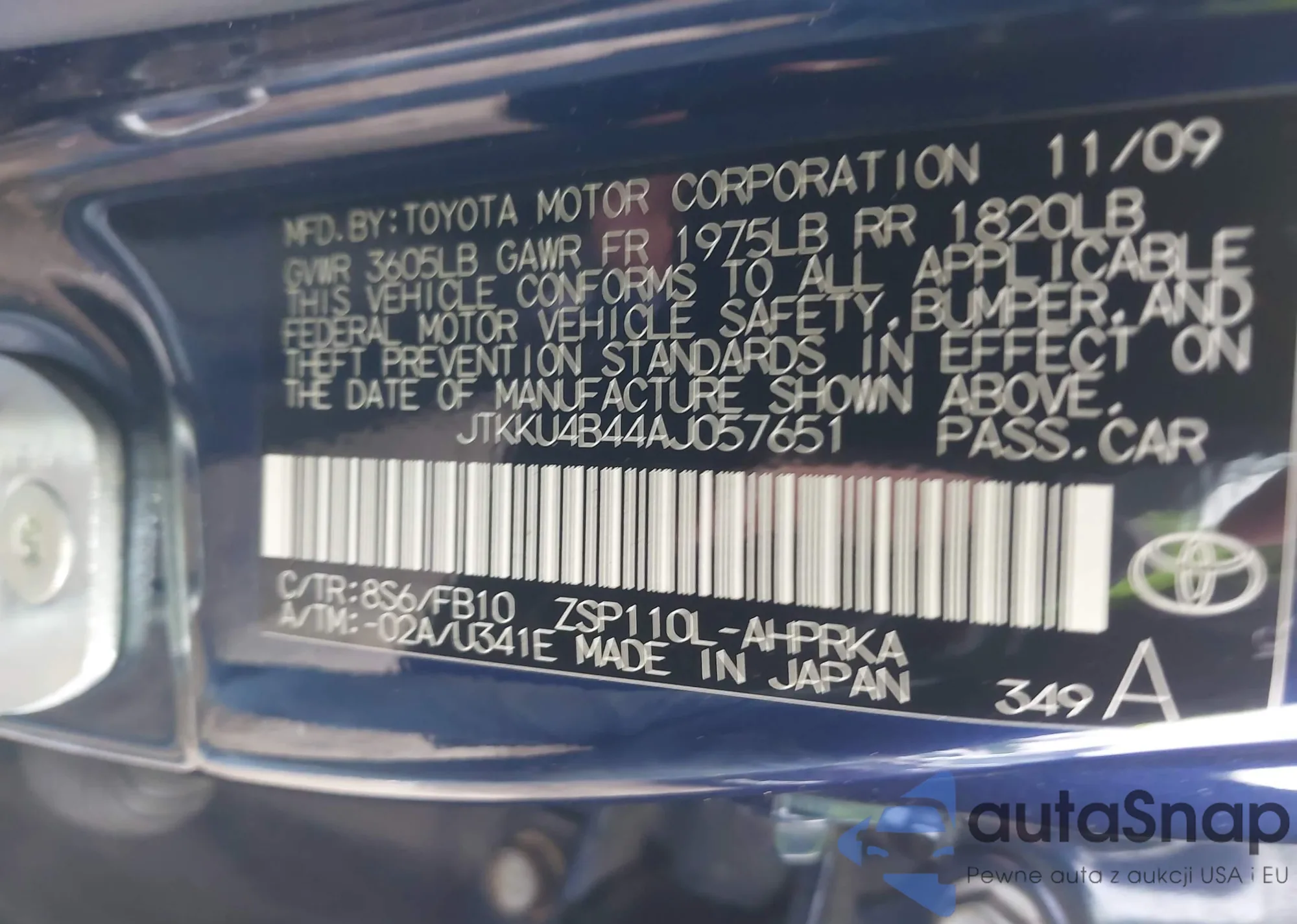 LOT: 42739285 VIN: JTDKN3DU5D5538517