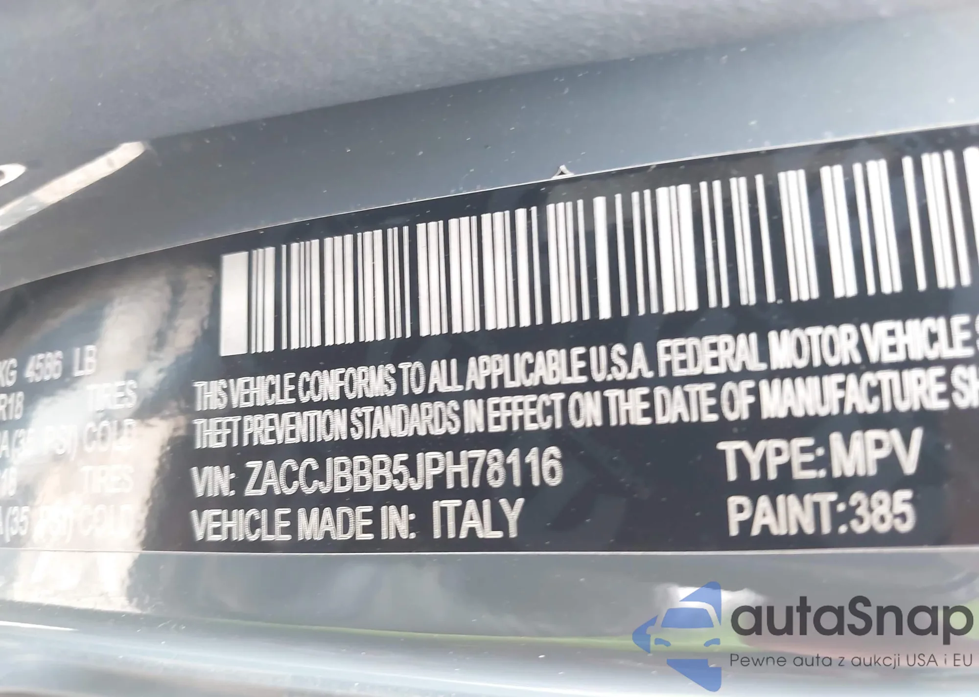 • VIN ZACCJBBB5JPH78116