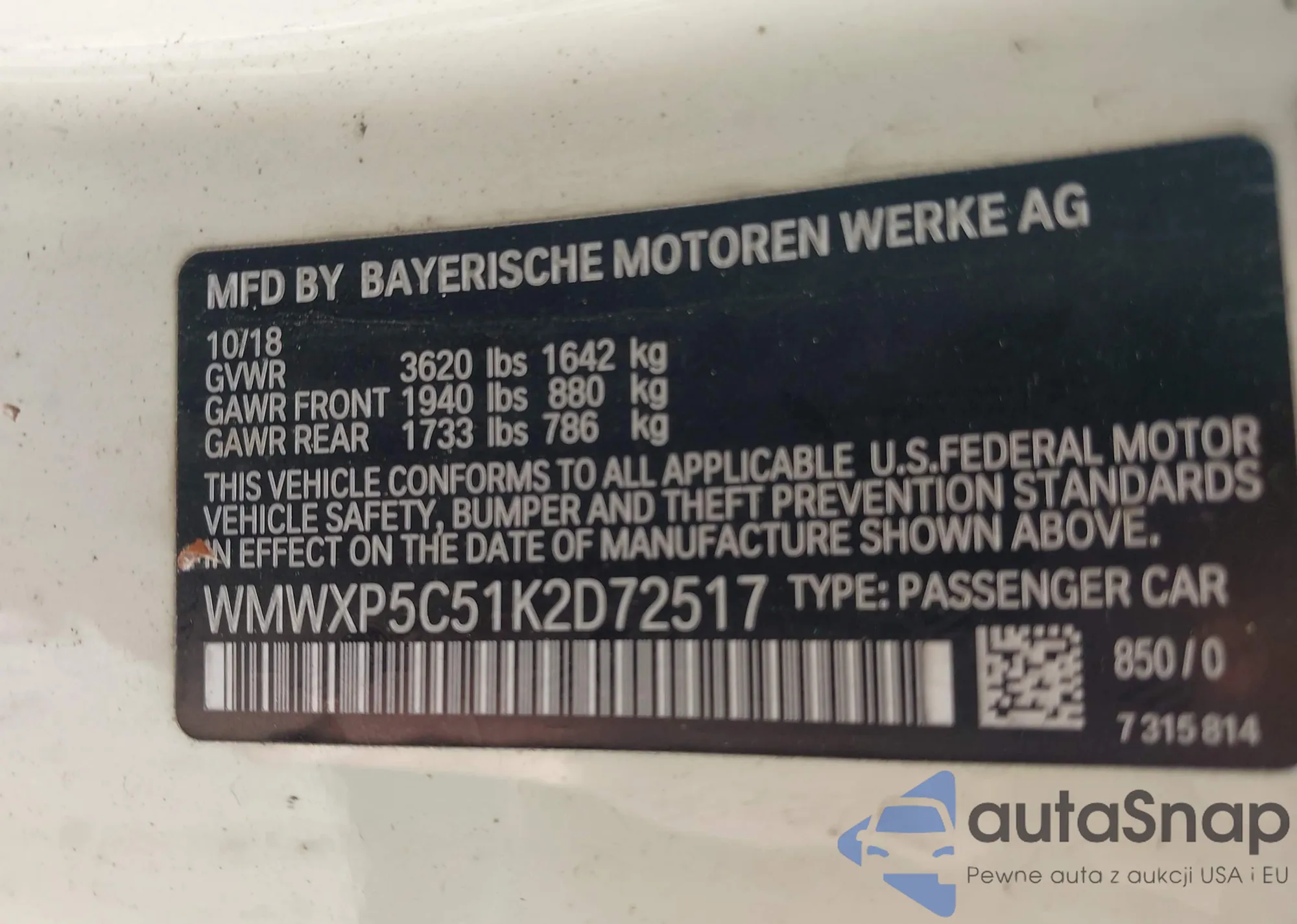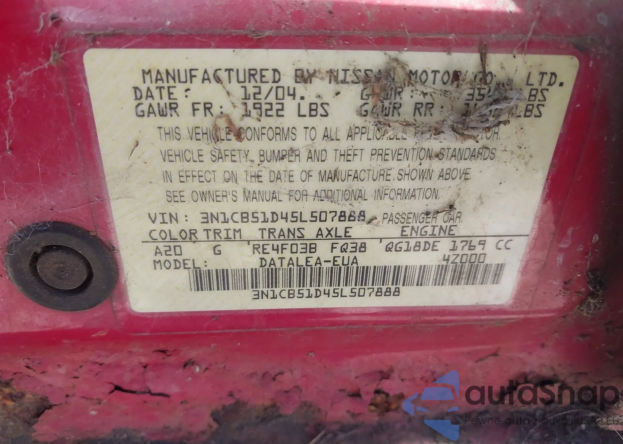• VIN 4T1F31AK5LU016727