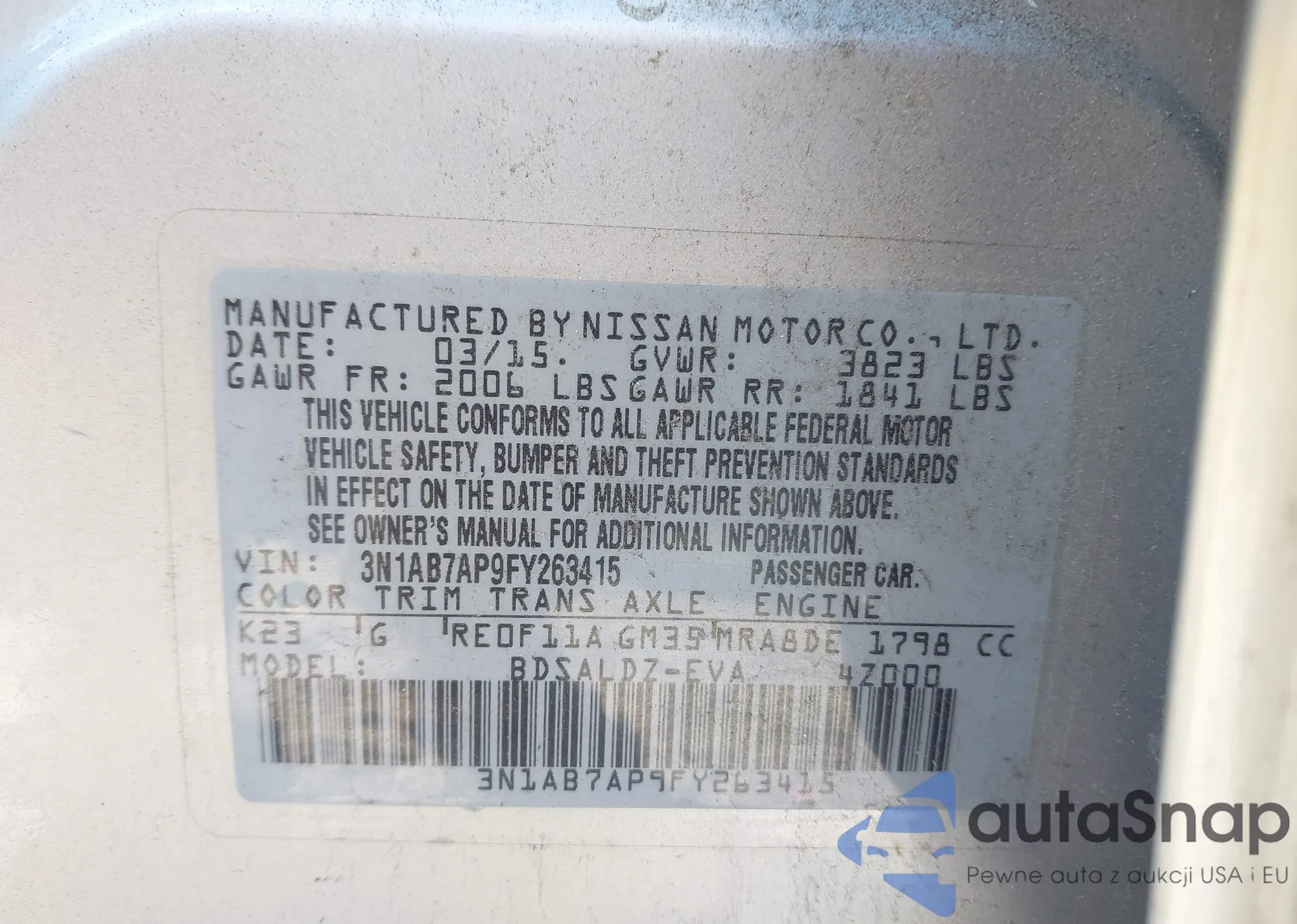 • VIN 3N1AB7AP9FY263415