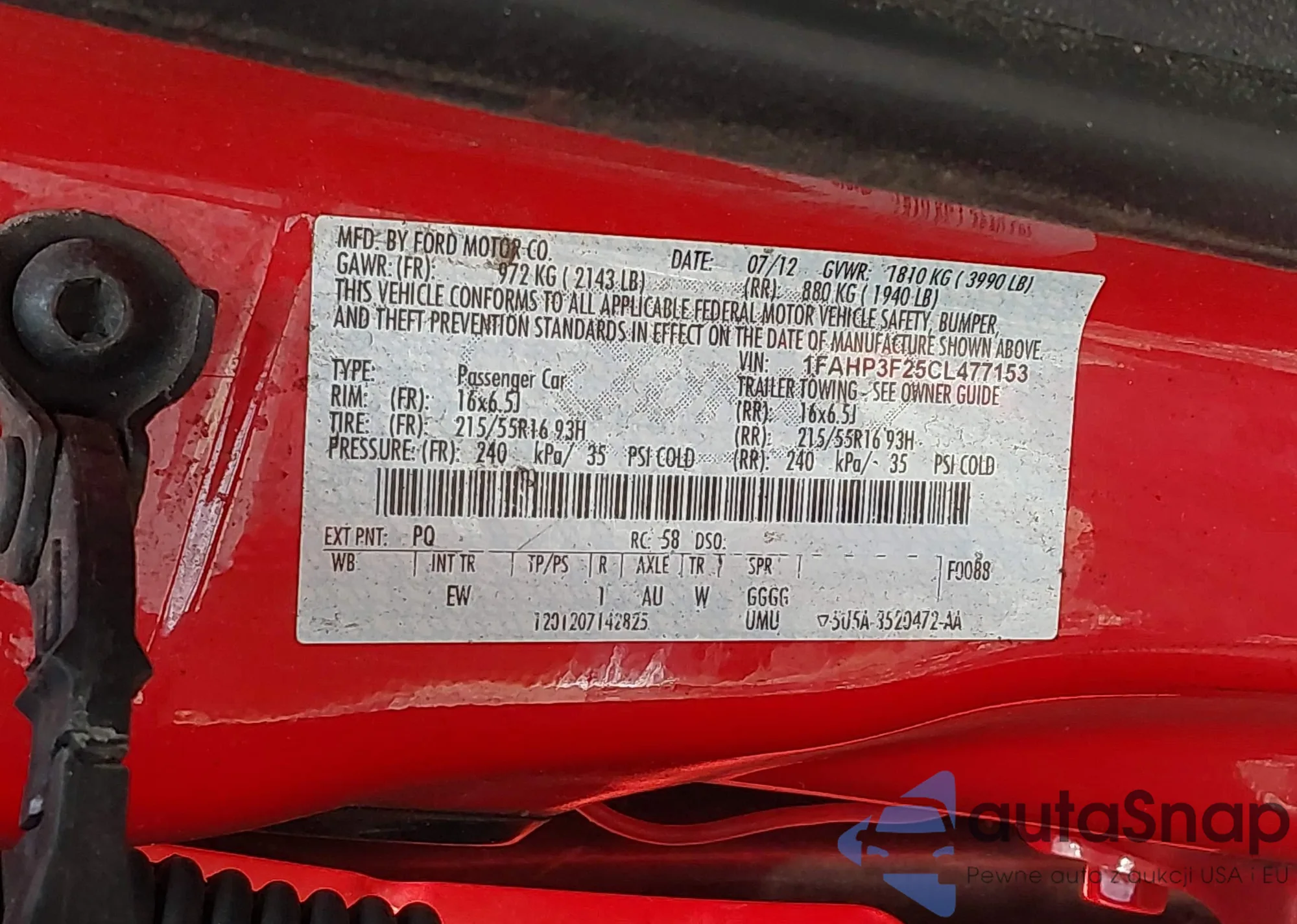 LOT: 42743497 VIN: 1FAHP3F25CL477153
